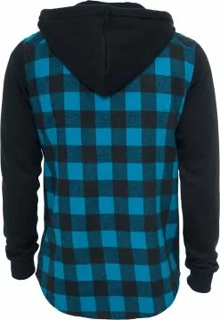 “Hooded Checked Flannel” Flanellen Overhemd Zwart-turquoise Van Urban Classics