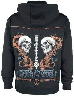 “Hoodie Met Hoge Kraag En Opvallende Prints” Trui Met Capuchon Zwart Van Rock Rebel By EMP