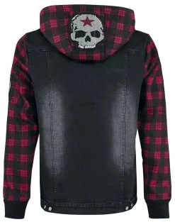 “Sound Check” Denim Jas Zwart-rood Van Rock Rebel By EMP