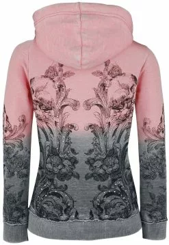 “Hooded Jacket With Rhinestone Details And Print” Vest Met Capuchon Grijs-rose Van Rock Rebel By EMP