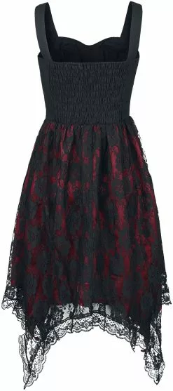 “Jurk Met Kant En Rits” Korte Jurk Zwart-rood Van Gothicana By EMP