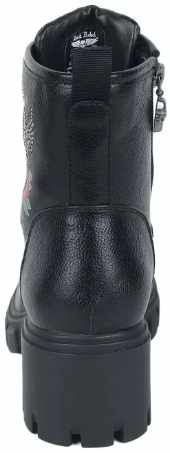 “Zwarte Veterboots Met Rozenprint En Strasssteentjes” Laars Zwart Van Rock Rebel By EMP