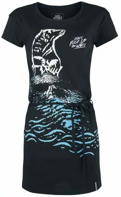 “Don’t Fuck Up The World – Short Black Dress With Print” Korte Jurk Zwart Van EMP Special Collection