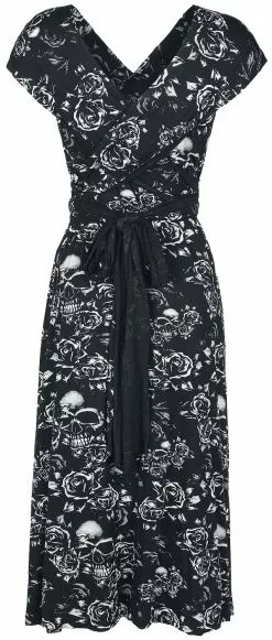“Multi-Way Dress With Skull & Roses Print” Medium-lengte Jurk Zwart Van Black Premium By EMP