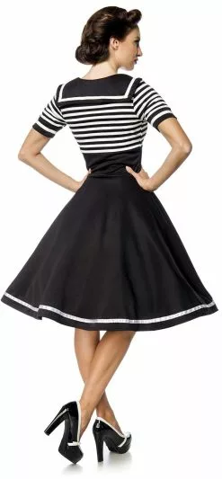 “Marine-Style Swing Dress” Medium-lengte Jurk Zwart-wit Van Belsira