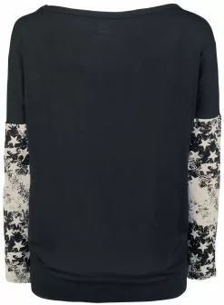 “Black Long-Sleeve Top With Star Print And Crew Neckline” Shirt Met Lange Mouwen Zwart-lila Van RED By EMP