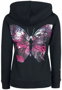 “Black Hooded Jacket With Butterfly Print” Vest Met Capuchon Zwart Van Full Volume By EMP