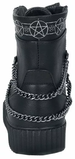 “Black Ankle Boots With Pattern, Straps And Chains” Hoge Hakken Zwart Van Gothicana By EMP