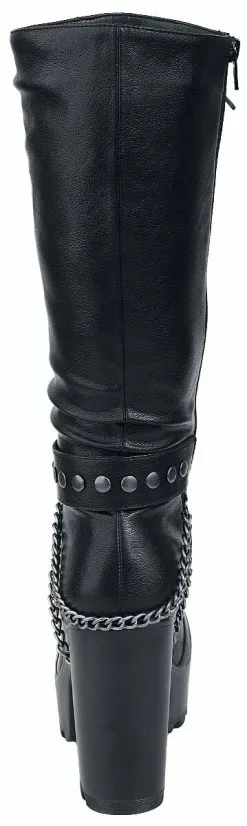 “Veterlaarzen Met Plateauzool, Kettingen En Gespen” Geveterde Laarzen Zwart Van Gothicana By EMP
