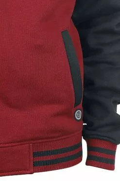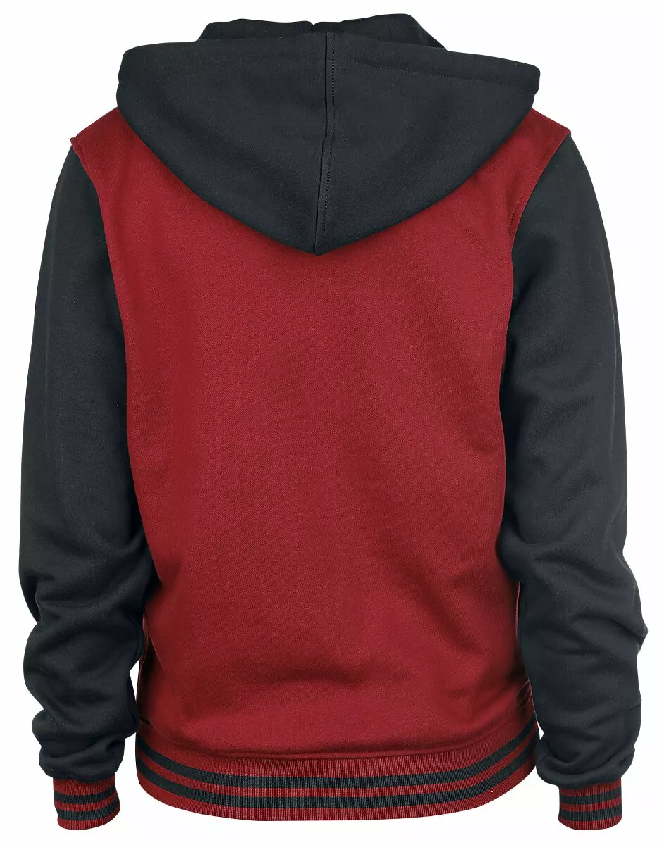 Tweekleurig vest in collegestijl van R.E.D. by EMP met capuchon, twee steekzakken en gestreepte zomen. Kwaliteit: 380 g/m²