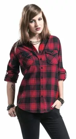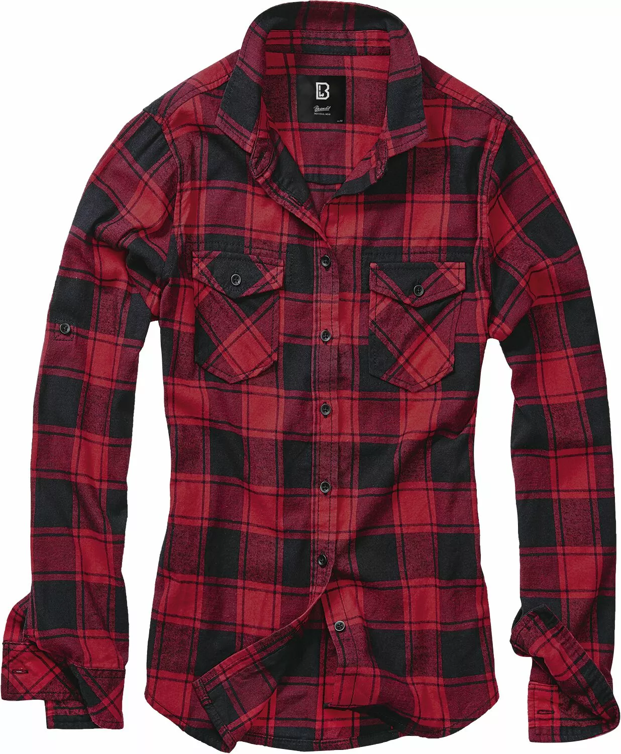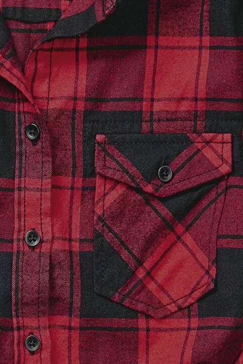 De rood/zwarte, getailleerde girls blouse “Amy Flannel Checkshirt” van Brandit heeft een ruitpatroon, twee vastgenaaide borstzakken, een overhemdkraag en een knopenrij. Het kledingstuk is gemakkelijk te combineren met allerlei soorten andere kleding en geschikt voor dagelijks gebruik.