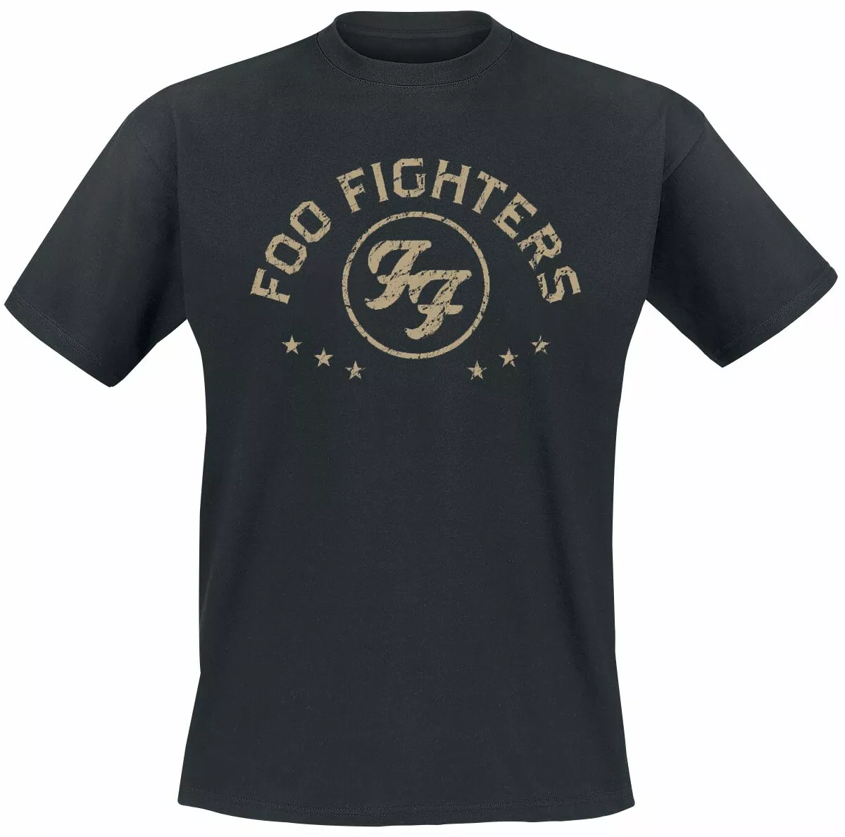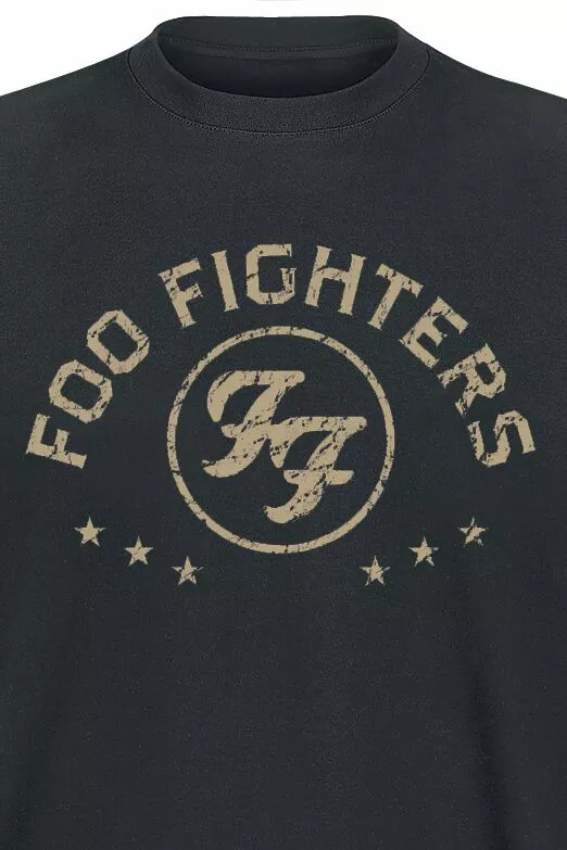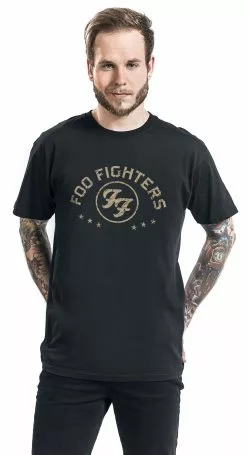 De band Foo Fighters, met voormalig Nirvana-drummer Dave Grohl aan het roer, maakt geweldige rockmuziek en heeft talloze fans over de hele wereld. Op de voorkant van het zwarte T-shirt “Arched Star” staat een goudkleurige print van het bandlogo en van de bandnaam van Foo Fighters. Met dit shirt kun je op een stijlvolle manier laten zien dat je een goeie muzieksmaak hebt!