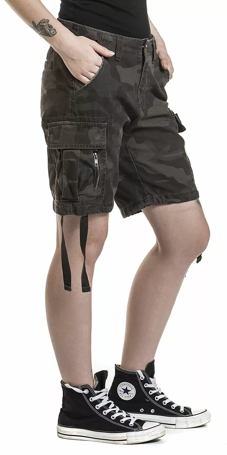 De “Army Vintage Shorts” van Black Premium by EMP zien er niet alleen heel goed uit, maar zijn ook ontzettend praktisch. Deze korte girls broeken hebben een cool camouflagepatroon, pijpzomen met trekkoord, een blinde ritssluiting, twee bevestigde beenzakken en een steekzak aan beide zijkanten, waarmee je genoeg ruimte hebt voor het meenemen van je belangrijke spullen.