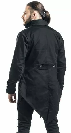 Op zoek naar elegante prints en ontwerpen die tegen de stroom ingaan? Dan heeft het Schotse merk ‘Poizen Industries’ speciaal voor jou de perfecte lange jas op de markt gebracht! Deze “Barnes Coat” is voorzien van twee steekzakken en een geïntegreerd vest met militant naadwerk en een ritssluiting. Verder is de jas uitgerust met enkele visuele details, waaronder decoratieve knopen op de voorkant, een decoratieve band met knopen aan de achterkant en een loopsplit in de onderkant van de achterkant. De reverskraag en omgeslagen mouwzomen met decoratieve knopen maken het geheel helemaal compleet.