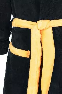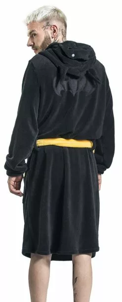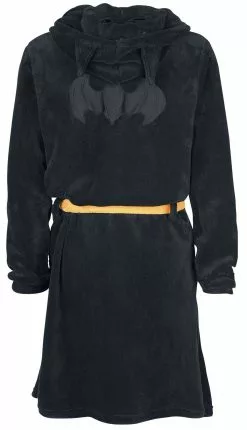 Jij bent Batman, en dat bewijs je met het dragen van deze ontzettend leuke badjas! Deze badjas heeft namelijk een capuchon met vleermuisoren en een afneembaar masker dat eruitziet als het masker van Batman. De gordel en de zoom van de zakken hebben een contrasterende kleur en op de achterkant vind je een grote, geborduurde patch van het logo van Batman. Nu kun je iedereen laten zien dat jij de enige echte bent!