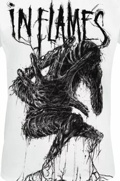 In Flames staat voor de klassieke Göteborg-sound en hebben zich vanuit het underground instituut ontwikkeld tot een van de meest invloedrijke bands van het genre. Hard werken en albums zoals “The Jester Race” en “Clayman” hebben de band veel opgebracht. Op het witte shirt “Big Creature” staat een gigantisch zwart wezen en natuurlijk de In Flames letters.