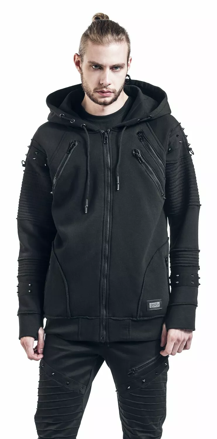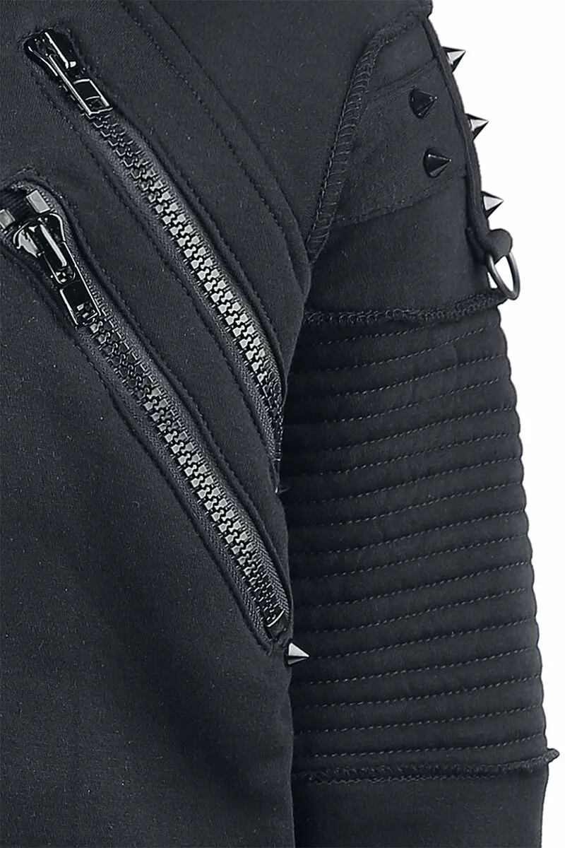 – studs op de mouwen, op de capuchon en op de zoom aan de achterkant
