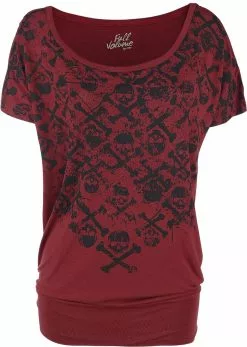 De ontwerpers van het girls shirt “Can You Read My Mind” van Full Volume by EMP hebben weer hun uiterste best gedaan, en dat is te zien! Dit shirt heeft een oversneden schouder, een wijde pasvorm en een indrukwekkende all-over-print van schedels en botten. Dankzij de wijde boothals kun je wat van je schouder laten zien als je dat wilt. Sexy!