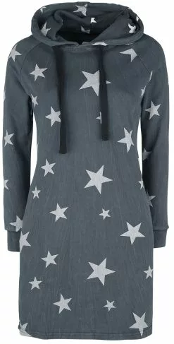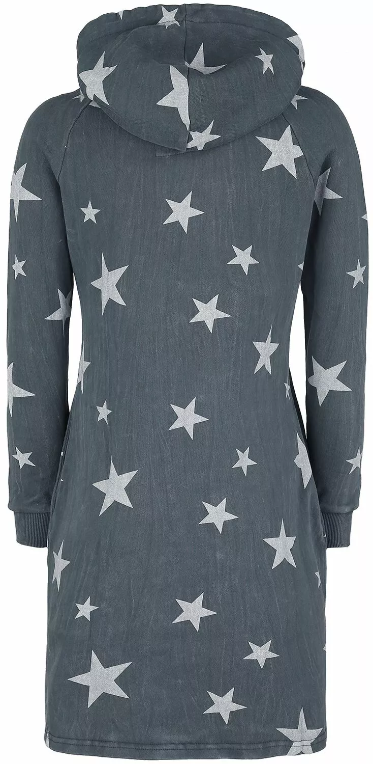 De korte, navy-blauwe jurk “Keep Me Warm” van RED by EMP heeft een vrouwelijke stijl en is prima geschikt voor de koudere dagen. Het kledingstuk zit lekker comfortabel en heeft een capuchon met trekkoord, een all-over-print van sterren, een zak met ritssluiting aan beide zijkanten en geribde mouwzomen. Exclusief verkrijgbaar bij Large!