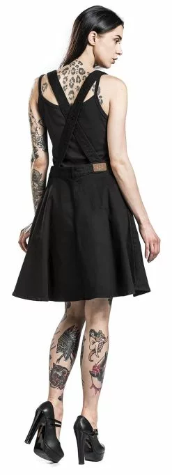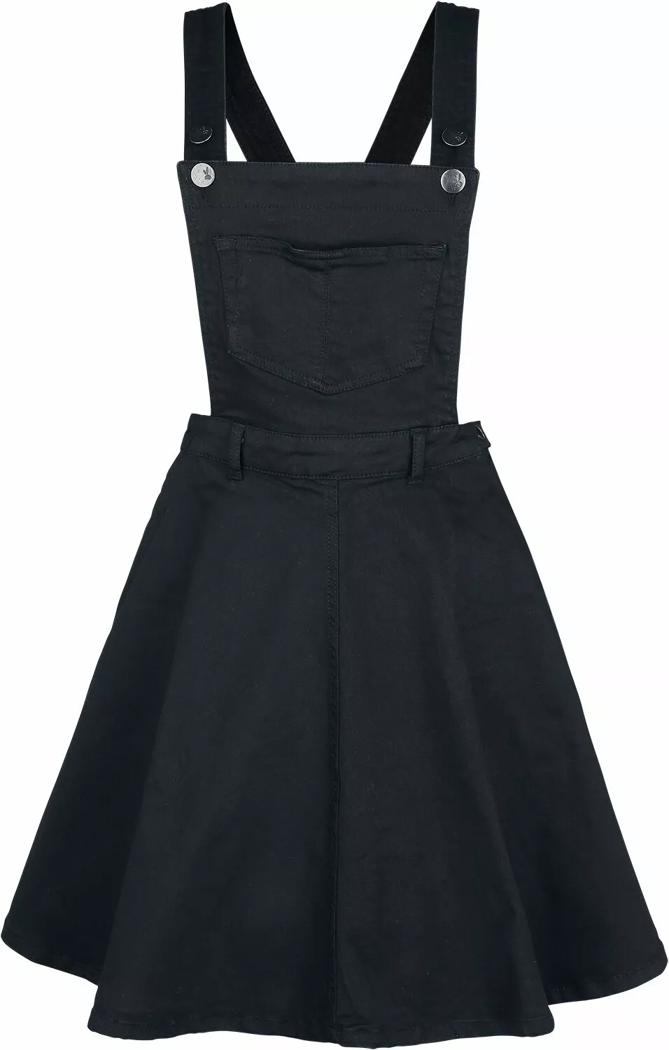 Op zoek naar een nieuwe jurk? Hou je van een speels en bescheiden uiterlijk, en heb je ook nog eens een voorkeur voor zwart? Kijk dan eens naar deze geweldige jurk van Hell Bunny! Het kledingstuk heeft een klassiek ontwerp en is voorzien van verstelbare schouderbandjes, drie knopen op beide schouderbanden en een praktische borstzak.