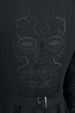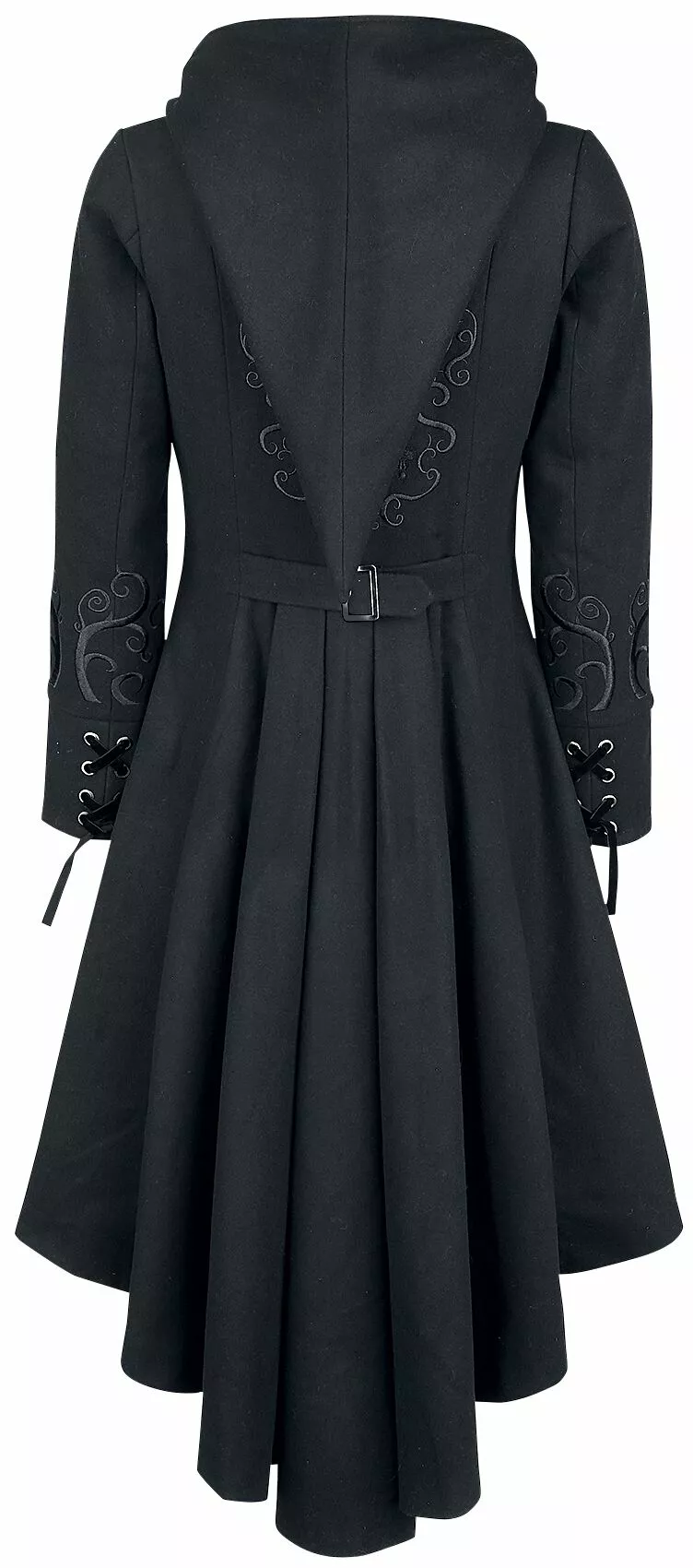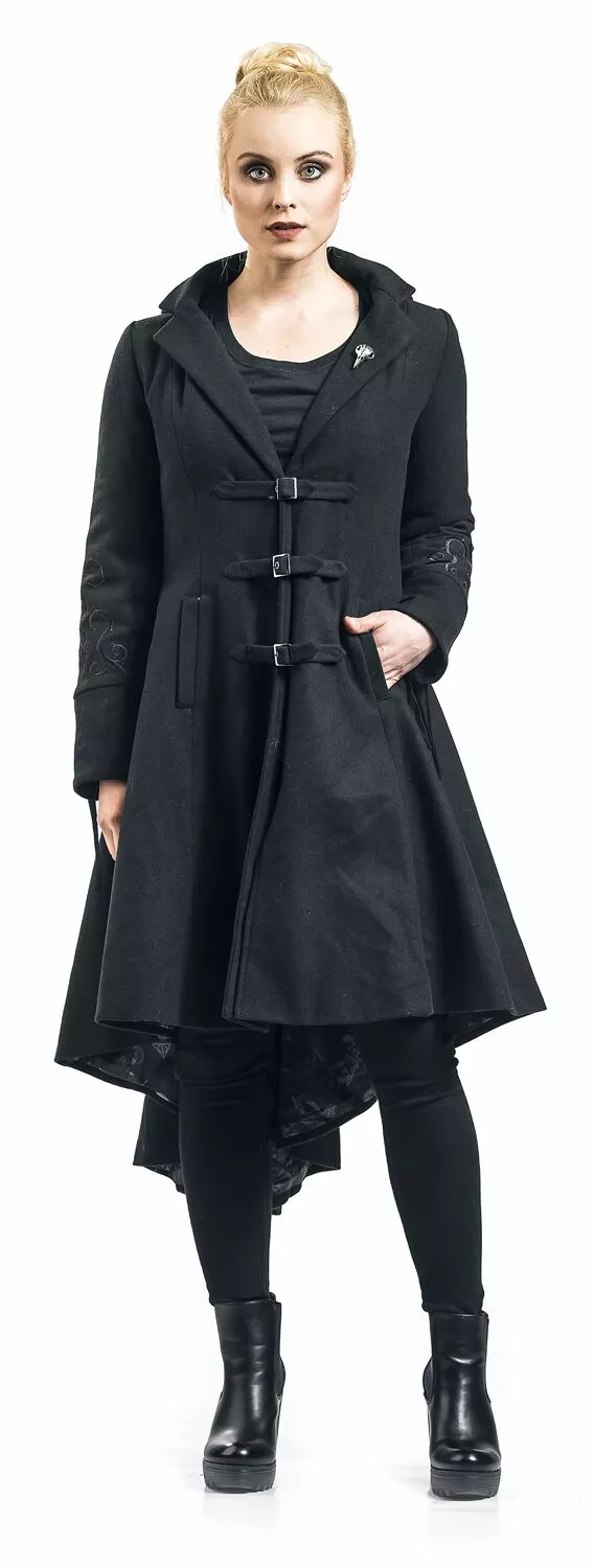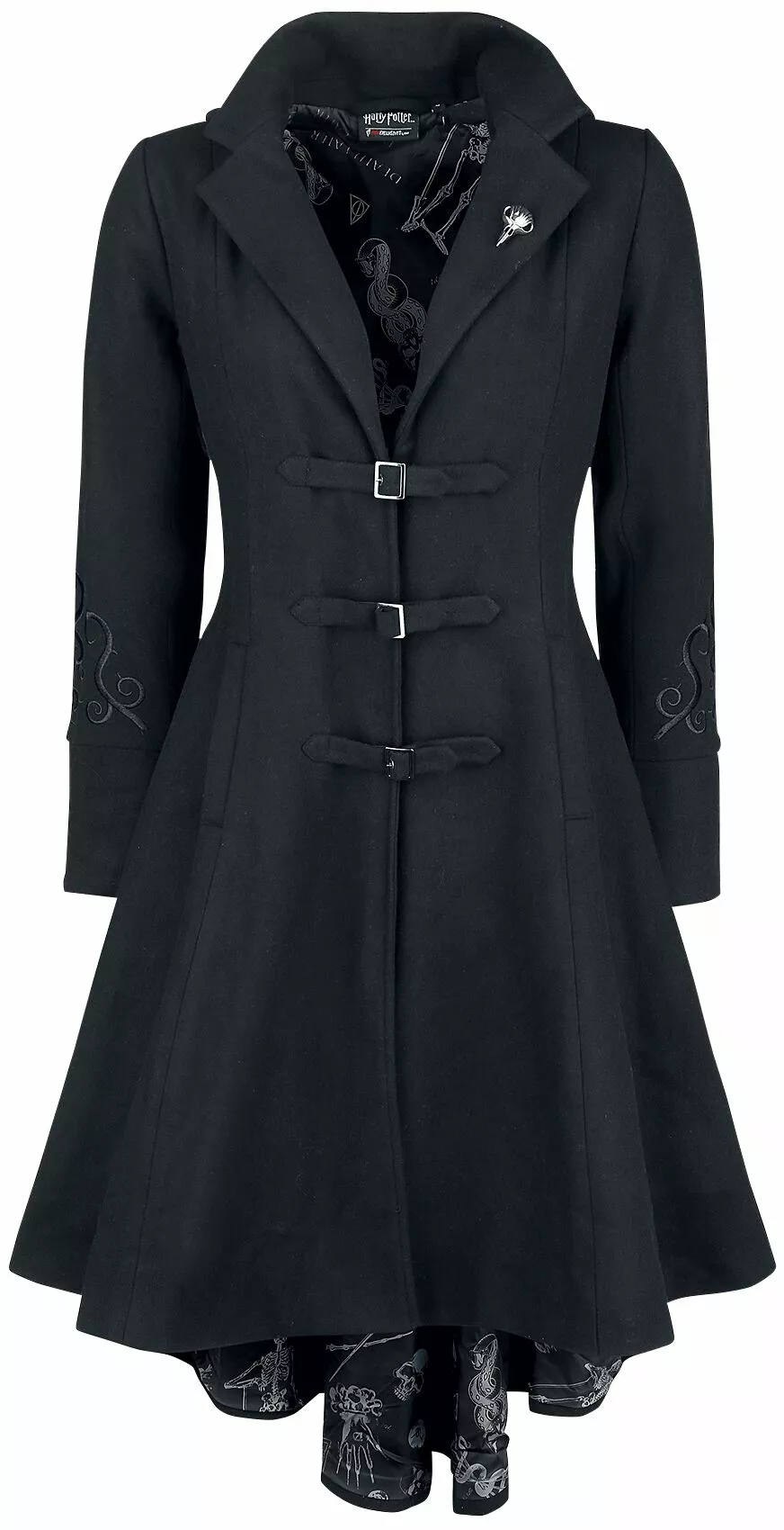 Speciaal voor de liefhebsters van Harry Potter die op zoek zijn naar een nieuwe jas, is exclusief bij ons deze bijzonder stijlvolle “Dark Arts – Bellatrix Lestrange”-girls jas van Harry Potter verkrijgbaar! De prachtige jas ziet er simpelweg schitterend uit en heeft een normale pasvorm met een voorkant en een achterkant die langer zijn dan de zijkanten. Verder is het kledingstuk voorzien van borduursels op de achterkant en op beide mouwen, een afneembare speld gevormd naar een ravenkop, een blinde ritssluiting met gespen die ook kunnen worden gesloten met drukknopen, een lange, puntige capuchon (afneembaar), een ruime onderzoom voor een sierlijk effect, een decoratief riempje met een gesp aan de achterkant, een ruime boothals met een reverskraag, een praktische steekzak aan beide zijkanten en lange mouwen met gekruiste koordjes in de mouwzomen. Een absolute aanrader!