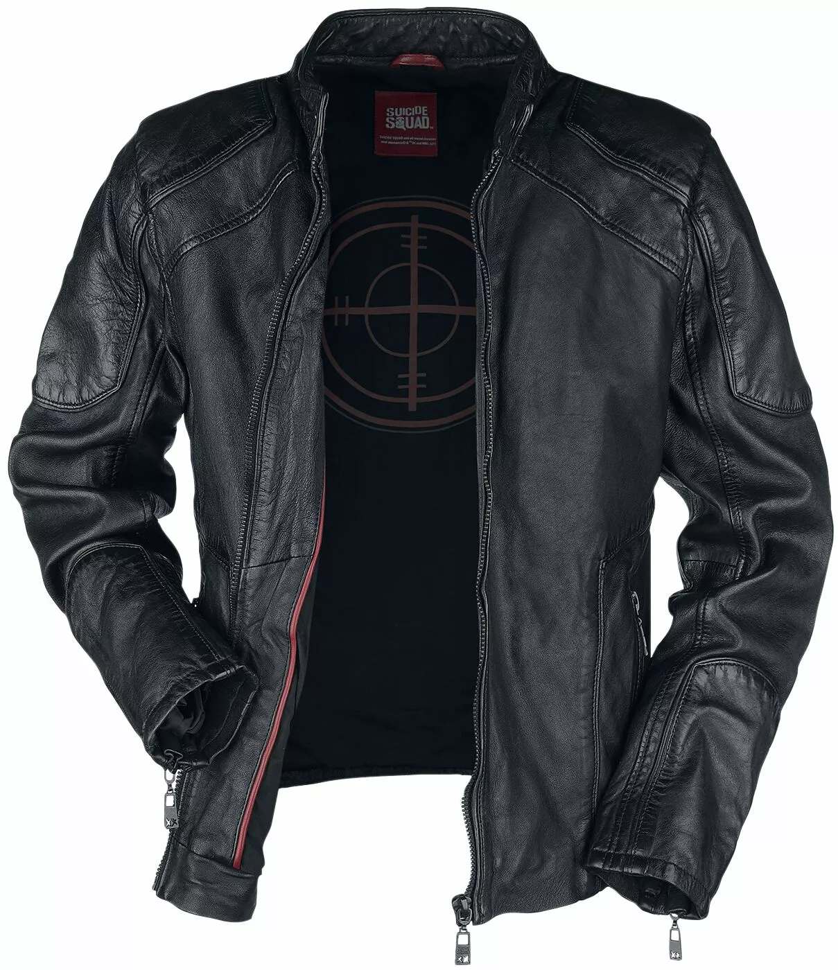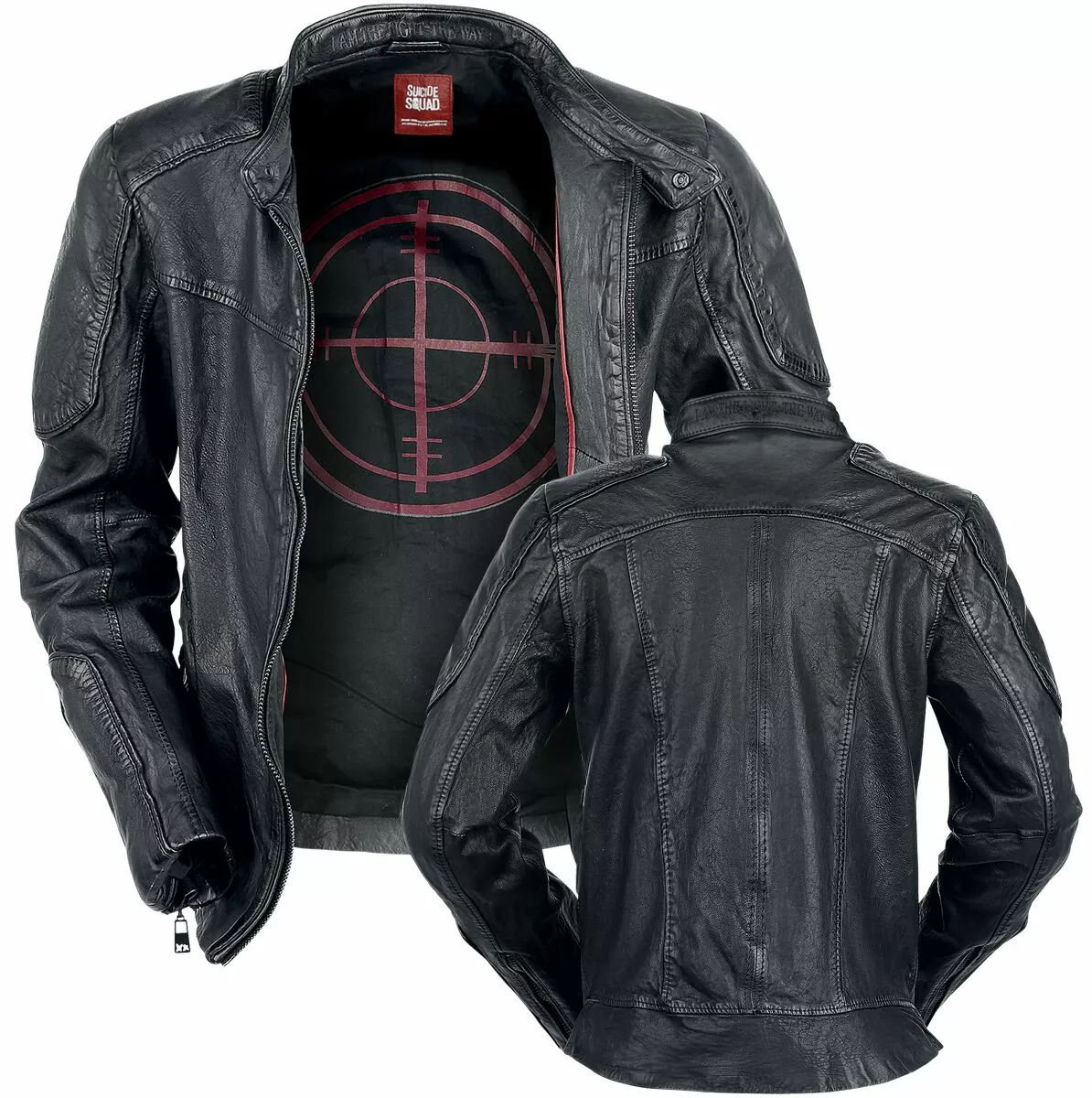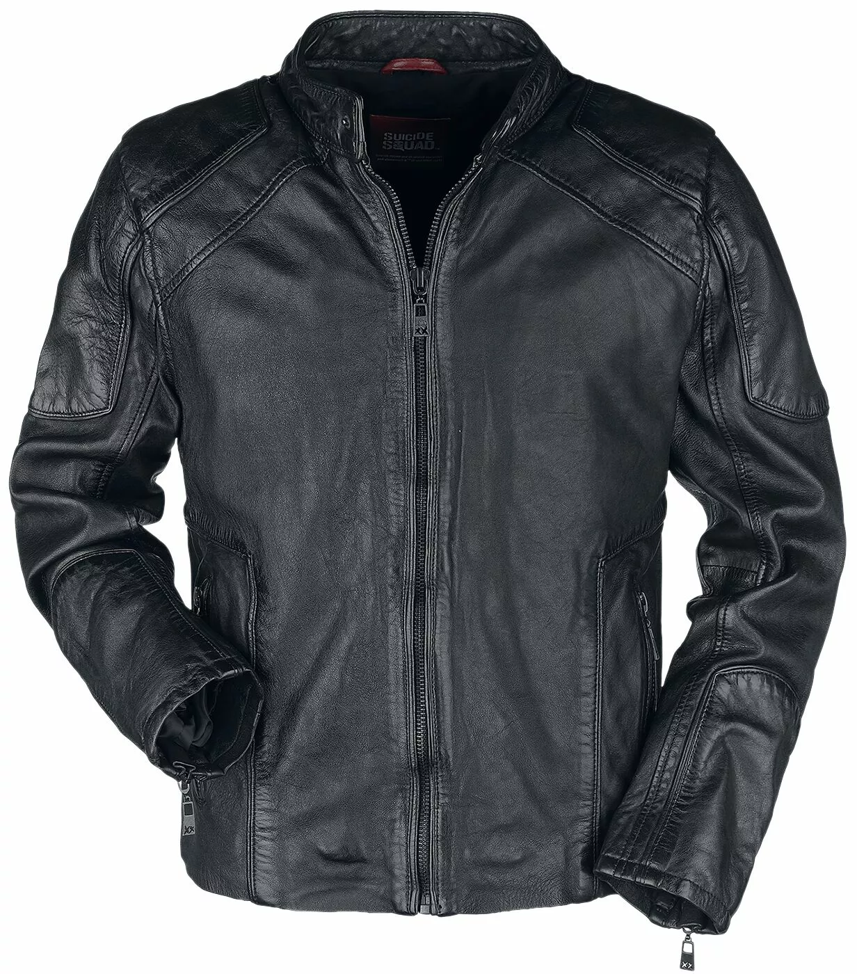 Vind jij de Suicide Squad ook zo cool en ben je een fan van Deadshot? Hou je daarbij ook nog eens van lederen jassen? Dan hebben wij iets moois voor je op voorraad! De lederen jas “Deadshot” van Suicide Squad is gemaakt van lamsleder en heeft een stoere bikerstijl. Daarbij heeft het jack een bandje met een drukknoop bij de kraag en is de achterkant van de kraag voorzien van een print met reliëf van de woorden “I Am The Light – The Way”. Beide mouwen en schouders zijn voorzien van patches en de mouweinden zijn voorzien van een ritssluiting. Het jack heeft verder een bedrukte binnenkant met rode details, meerdere decoratieve naden en geïntegreerde draden voor stabilisering. Je belangrijke spullen kun je meenemen in de steekzak met ritssluiting in beide zijkanten en in de drie binnenzakken, waarvan er één is voorzien van een ritssluiting, één van een klittenbandsluiting en één van een borduursel.