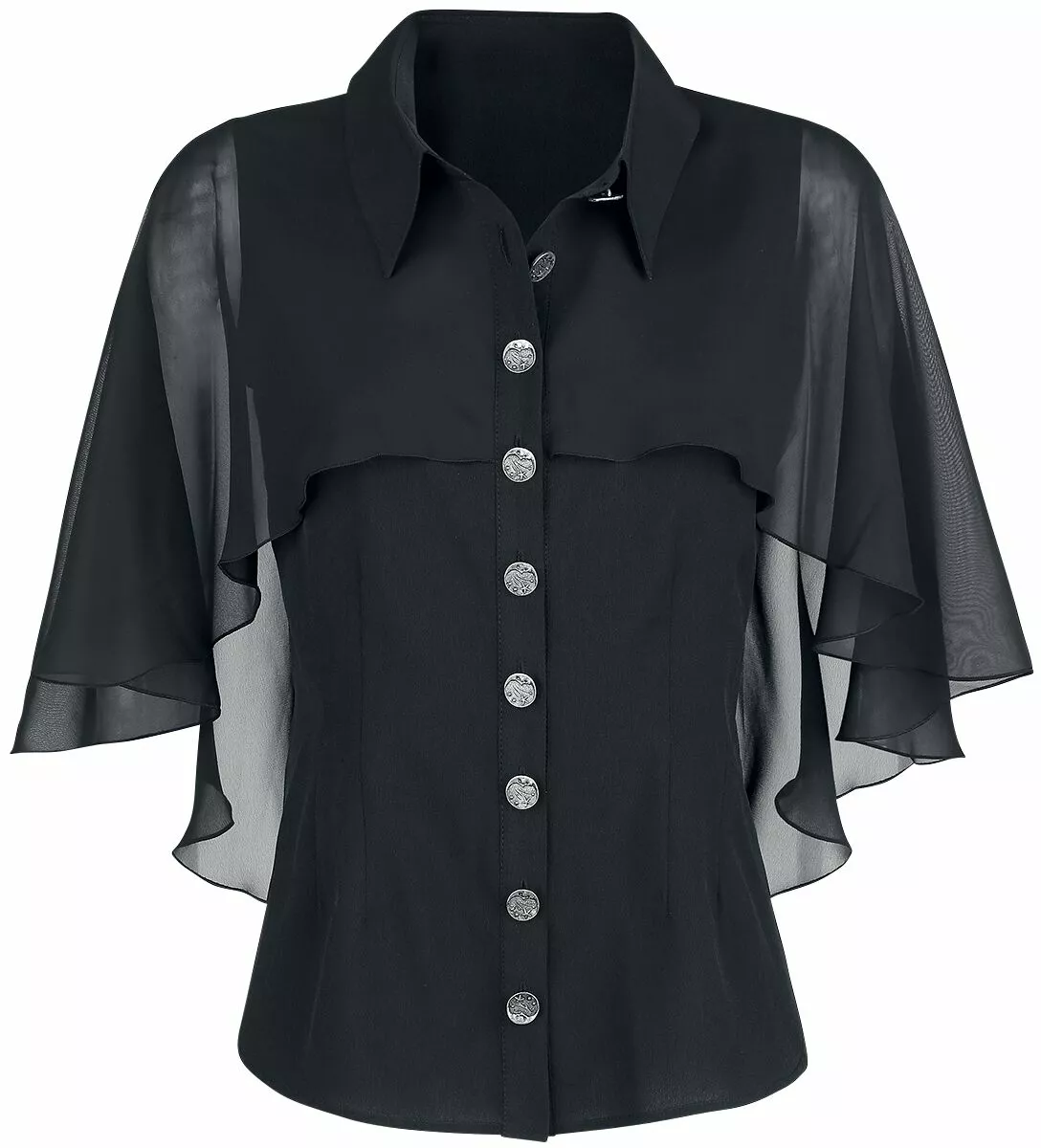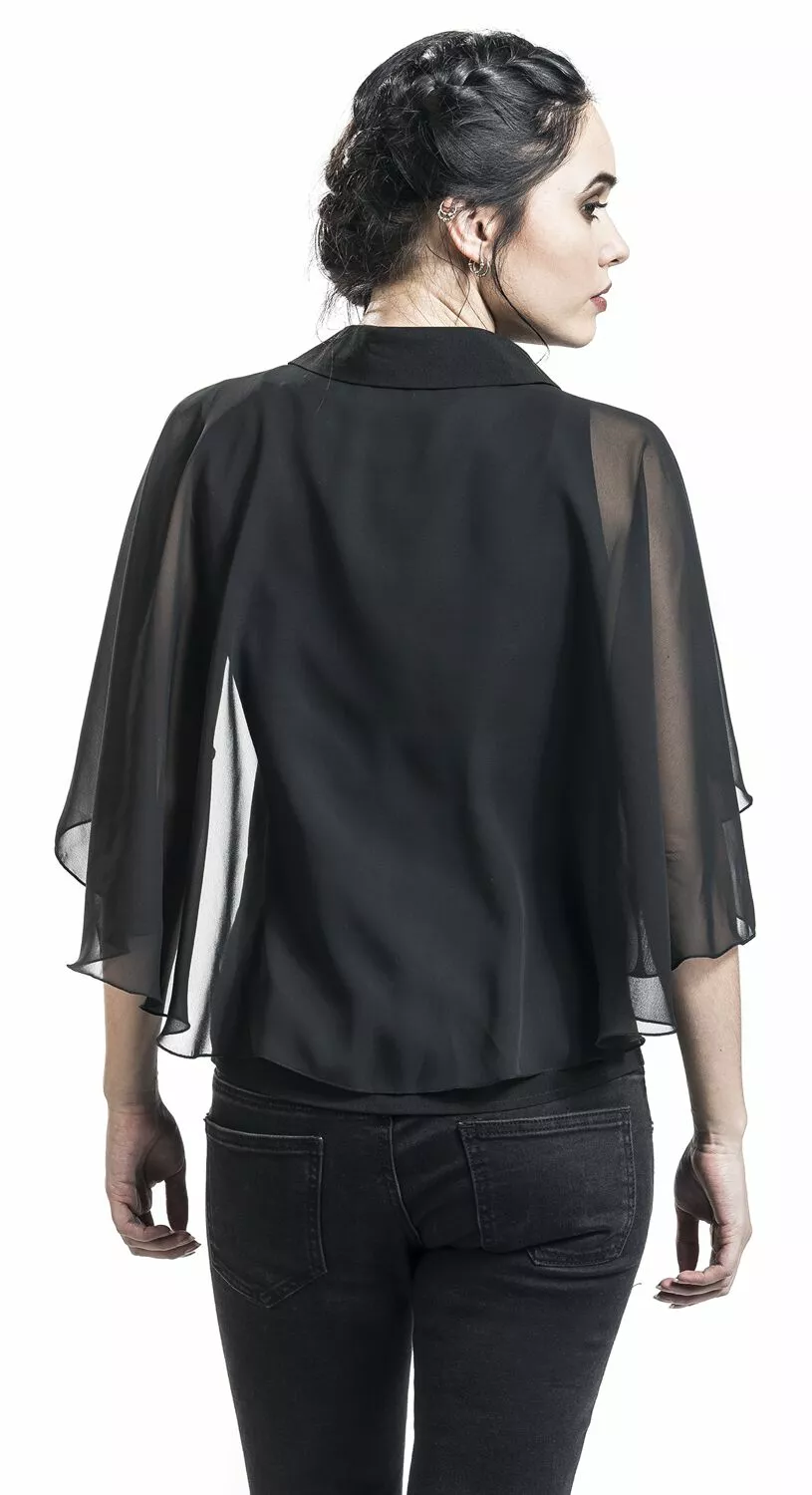 – vleugelmouwen met transparante onderdelen