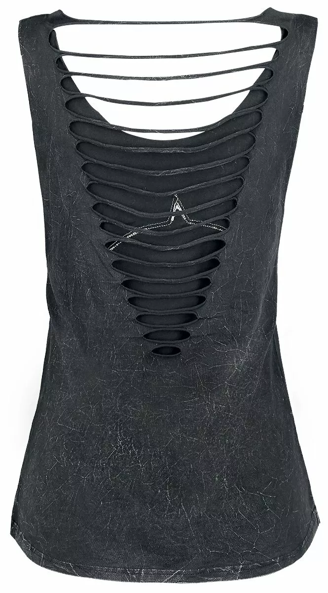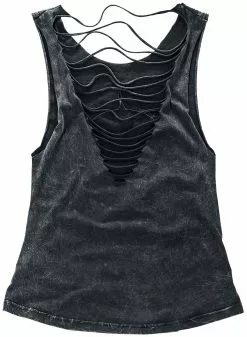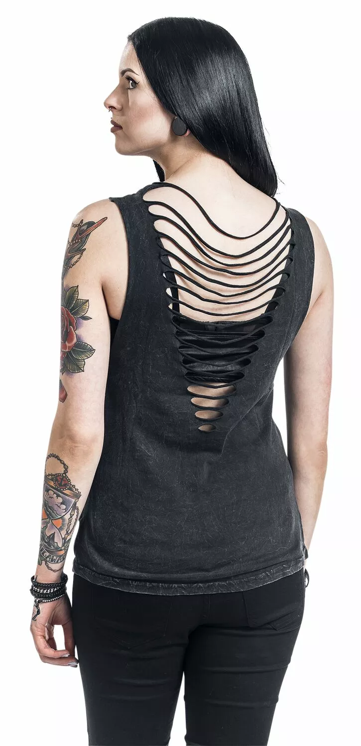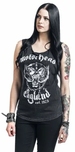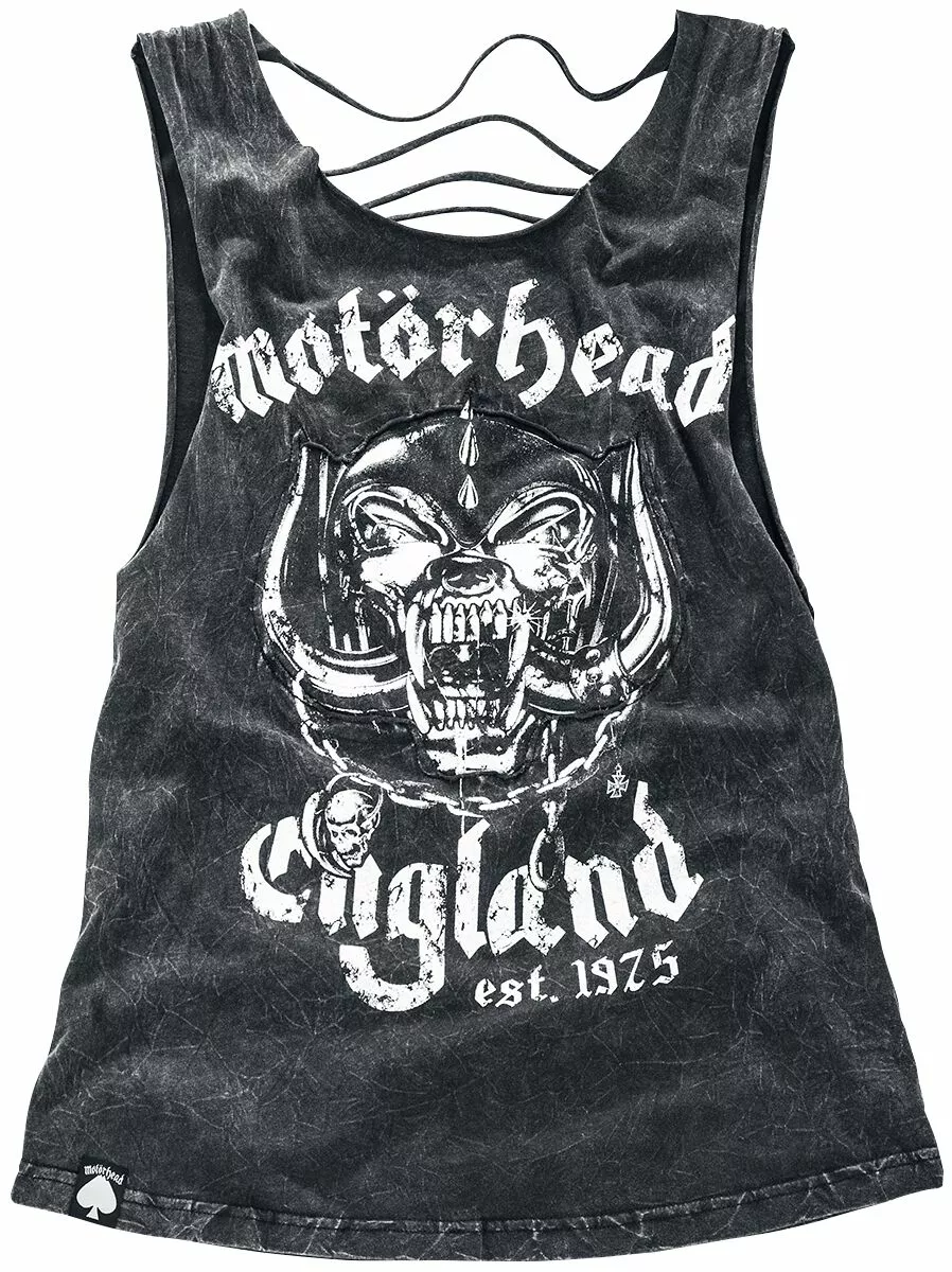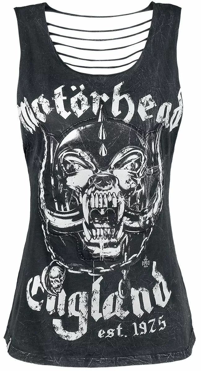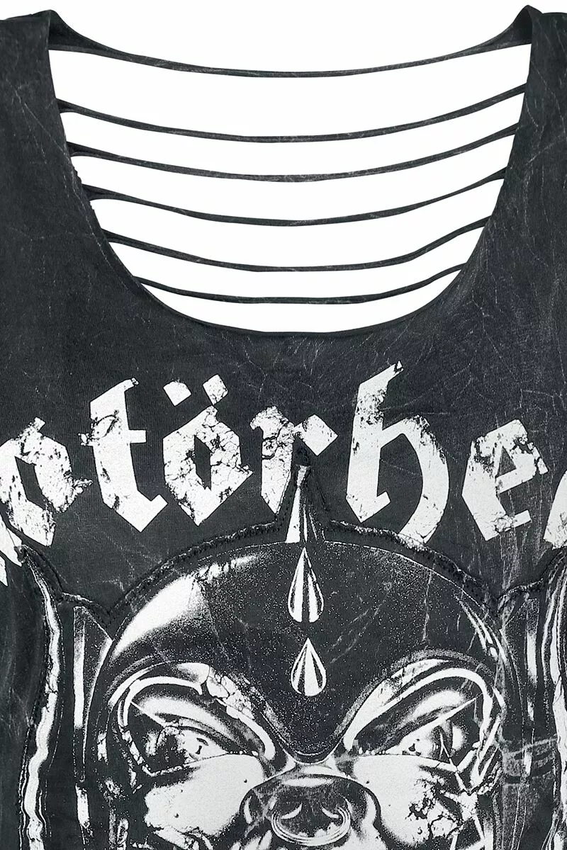 Motörhead is een echte legende! Een mix van whiskey, rock ‘n’ roll en de herkenbare stem van Lemmy Kilmister werkt altijd goed. EMP maakte in samenwerking met Motörhead de Black Premium by EMP Signature Collection. Eén van de resultaten daarvan is deze zwarte girls top met print van de bandmascotte Snaggletooth. De uitsnijdingen in de achterkant en de vintage look maken de top helemaal perfect.