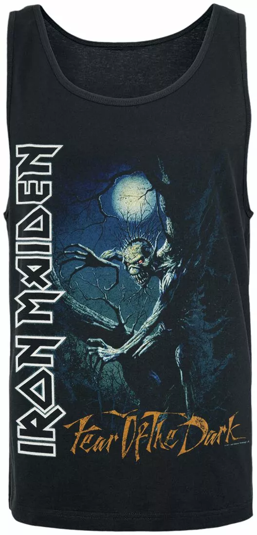 Bij jij bang voor het donker? Zo niet, dan zal de coole tanktop “FOTD Tree Spine” je misschien wel van gedachten doen veranderen! Op de voorkant van deze zwarte tanktop staat namelijk een print van de geweldige coverart voor het album “Fear of the Dark” van Iron Maiden. Dit officiële, mouwloze kledingstuk is perfect geschikt voor in de zomer!