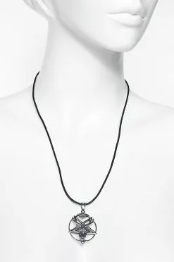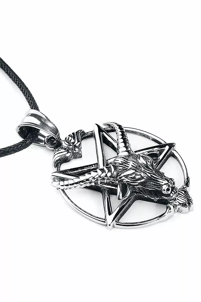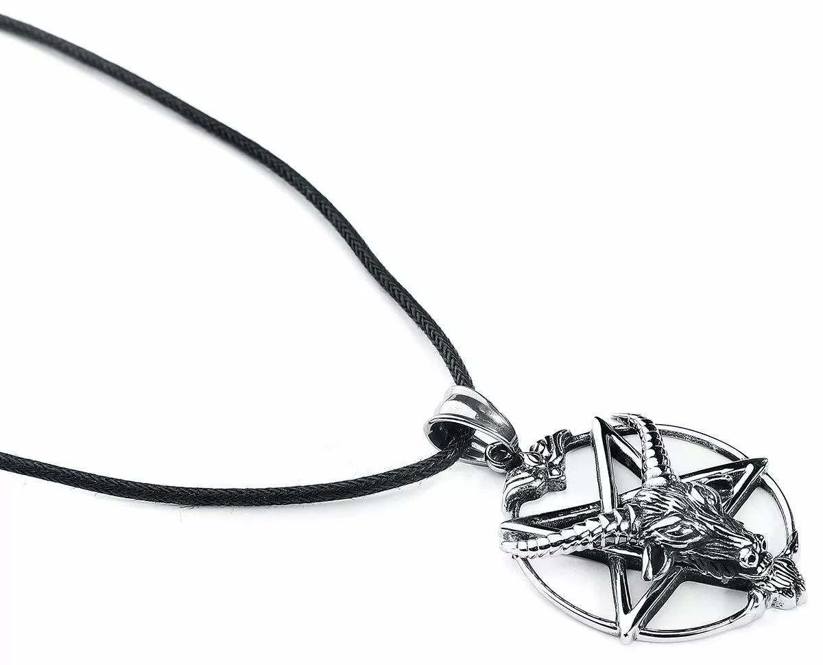 – halsketting en zilverkleurige hanger met pentagram en geitenkop