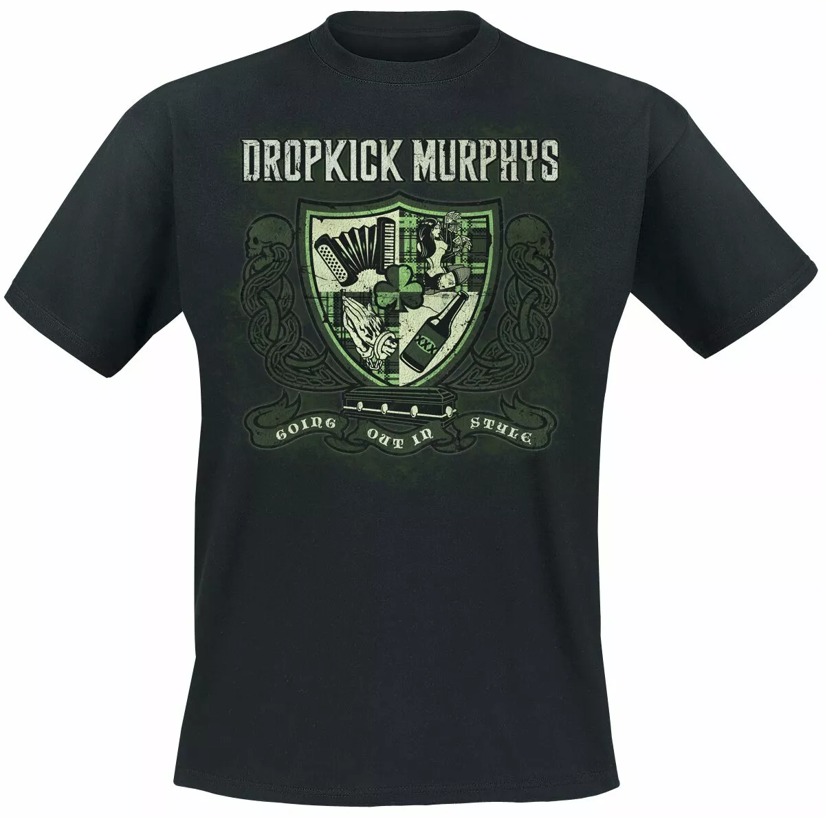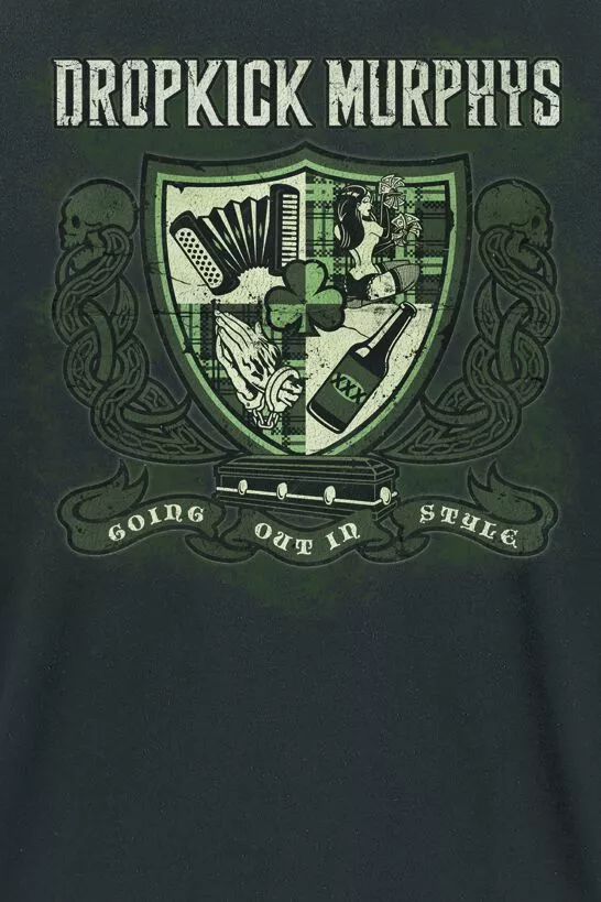 Going Out In Style als Dropkick Murphys fan? Geen probleem! Hier krijg je een prachtig zwart shirt van de Dropkick Murphys met grote opdruk op de borst. Je ziet de albumcover van “Going Out In Style” in het typische ierse groen. De Dropkick Murphys letters erboven is het puntje op de i van dit fantastische shirt.