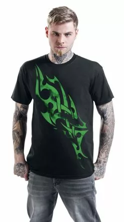 Een simpel zwart T-shirt om in te feesten of te chillen. De fraaie “Green Smoky Tribal” op de voorkant is zeker iets om naar te kijken en zal de aandacht trekken van velen. Fantastisch, toch?
