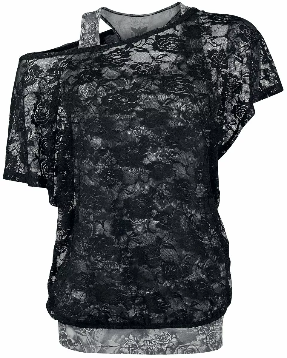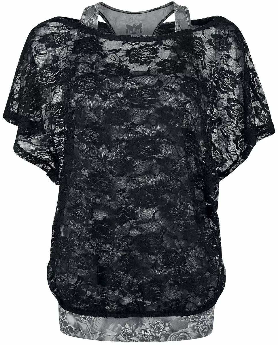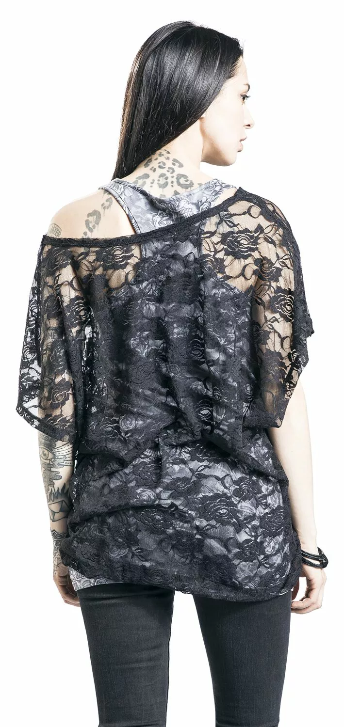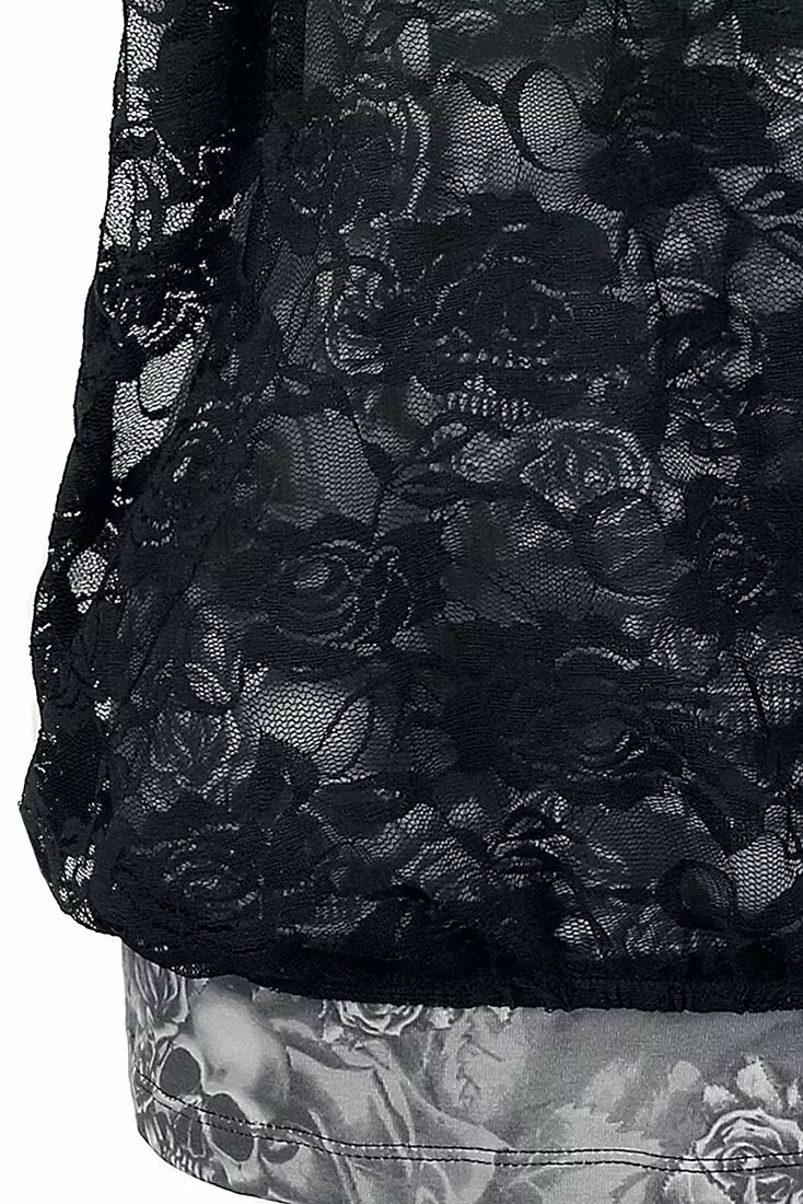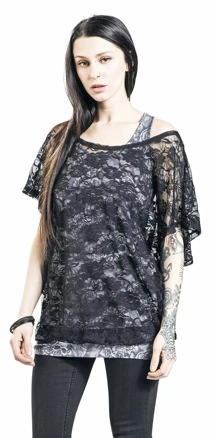 – Top met schedelprint, shirt van kant
