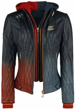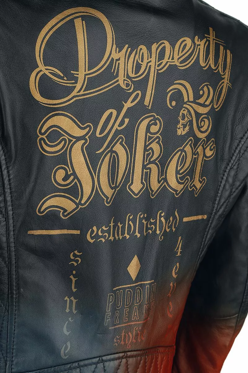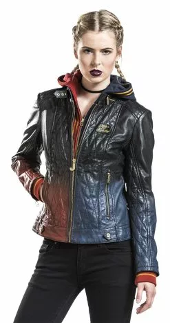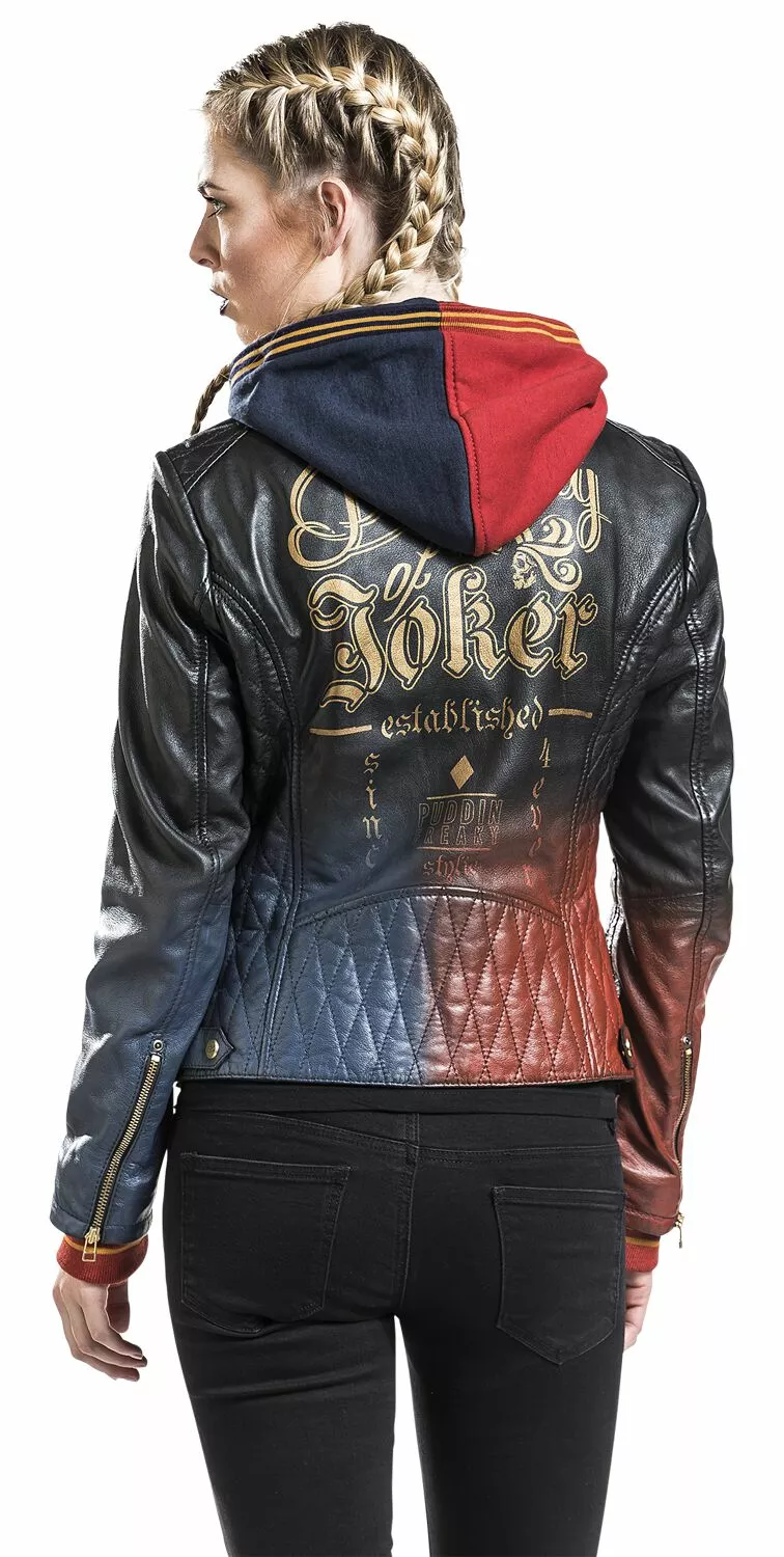 Vind jij de Suicide Squad ook zo cool en ben je een fan Harley Quinn? Hou je daarbij ook nog eens van lederen jassen? Nou, dan hebben wij iets moois voor je! De lederen girls jas “Harley Quinn – Daddy’s Lil’ Monster” van Suicide Squad ziet er waanzinnig uit en is exclusief verkrijgbaar bij Large. Dit jack is gemaakt van echt leder en heeft een grote print van de woorden “Property of Joker” op de achterkant, een geborduurde patch met de woorden “Daddy’s Lil Monster” op de borst en een ritssluiting met een J-vormige ritshanger in de voorkant. Daarbij heeft het jack een uitneembaar capuchoninzetsel met een ritssluiting, een bandje met knopen onderaan beide zijkanten en een verstelbaar riempje met een gesp bij de kraag. Maar wacht, we zijn er nog niet! De jas heeft ook nog een ritssluiting in beide mouweinden, gebreide, geribde, elastische mouwzomen met strepen, een borduursel op de rechtermouw en doorgestikte delen in de voorkant, achterkant, mouwen en schouders. Je belangrijke spullen kun je meenemen in de steekzak met ritssluiting in beide zijkanten en in de binnenzak met ritssluiting. Houd er a.u.b. rekening mee dat de jas een maat kleiner uitvalt dan normaal. We raden dan ook aan om een grotere maat te bestellen.