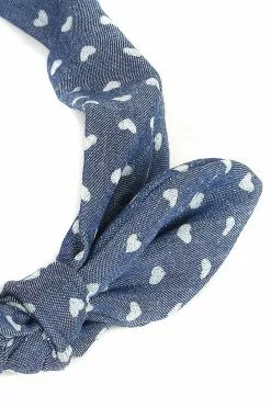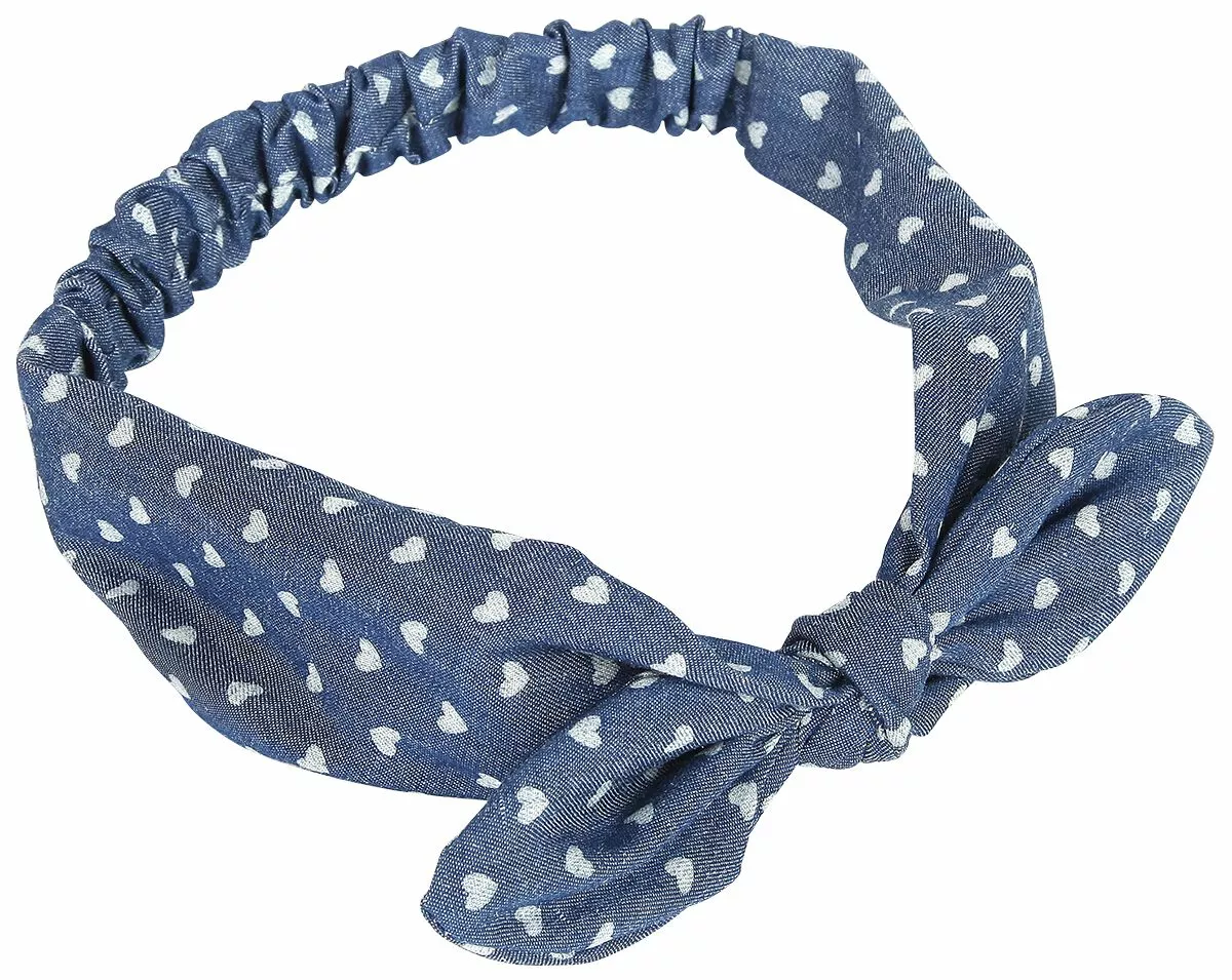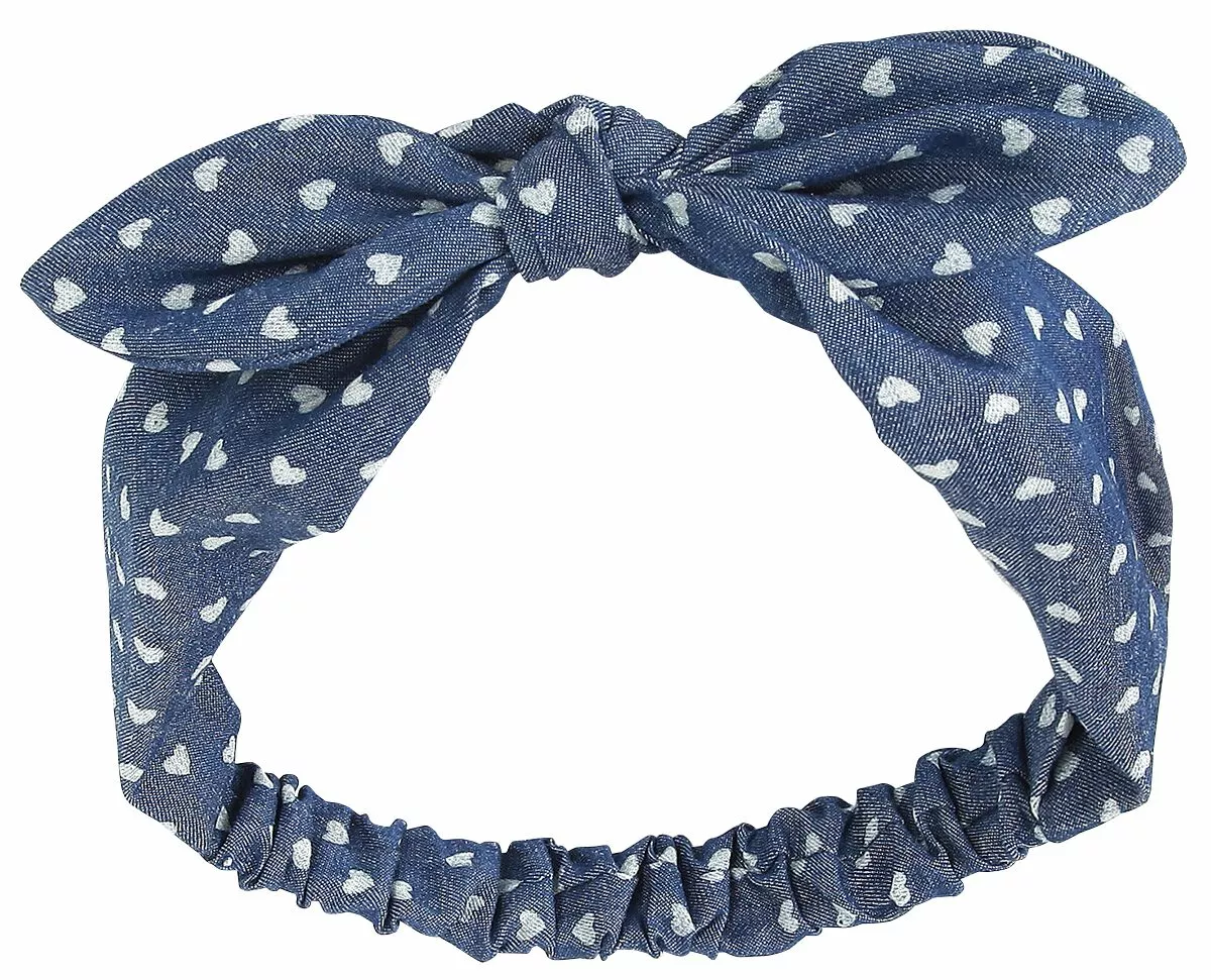 Van ver doet de blauwe Heart Bow haarband met strik denken aan de polkadot stijl van de vijftiger jaren. Eerst van dichtbij zie je dat de stipjes op de oudblauwe stof kleine witte hartjes zijn. Door de elastieken band op de achterkant past de accessoire van het merk Banned op ieder meisjeshoofd en bij kort of lang haar. De strik van de 7 cm brede haardband kan door het ingewerkte ijzerdraad individueel gefixeerd worden.
