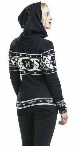 Met de gebreide girls trui “Hogwarts” van Harry Potter kun je op een comfortabele en stijlvolle manier laten zien dat je een fan bent. De trui is gemaakt van zacht, comfortabel materiaal en heeft een gebreid patroon met logo van Hogwarts en van de vier verschillende huizen op de voorkant, achterkant en mouwen. Het kledingstuk heeft verder een V-hals met koord, een capuchon en geribde zomen.