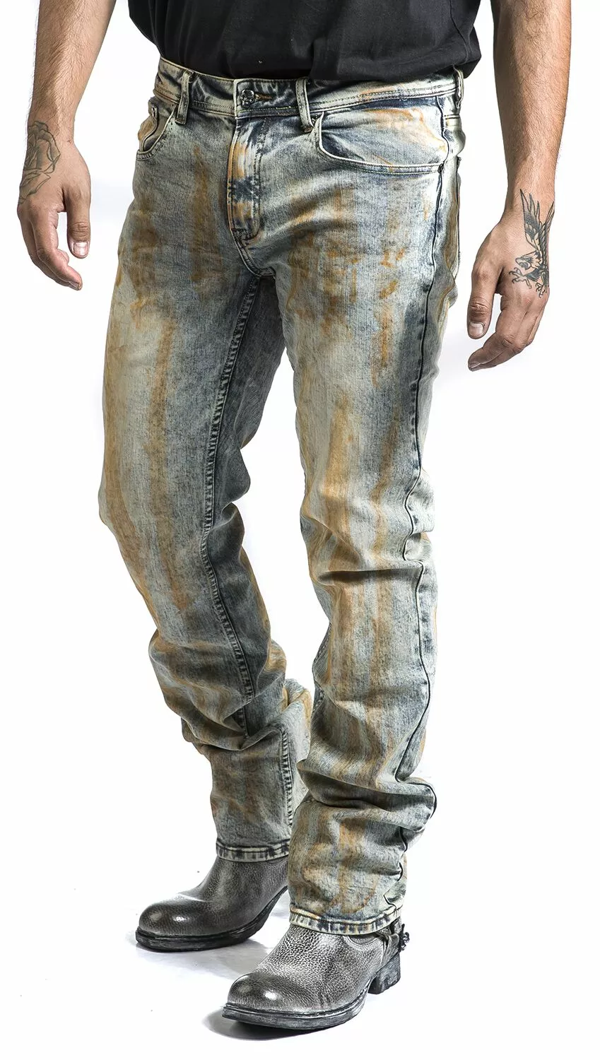 Een rebels gevoel hoort gewoon bij rock, net zoals laarzen en denim! Al deze dingen worden gecombineerd met deze jeans van Rock Rebel by EMP. Deze geweldige broeken hebben een praktische bootcut, blauwe, grijze en bruine kleuren en zien er allemaal verschillend uit dankzij de unieke wasresultaten. Tot slot bieden de vijf broekzakken genoeg ruimte voor het meenemen van je belangrijke spullen.
