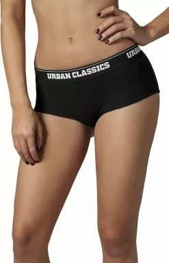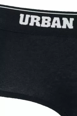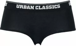 Een onderbroek is bijzonder praktisch, maar dat hoeft niet te betekenen dat ze eruitzien alsof je oma ze voor je heeft gebreid. De “Ladies Logo Panty Double-Pack” bestaat uit twee onderbroeken die niet alleen comfortabel zitten, maar er ook goed uitzien. Ze hebben een elastische tailleband waarop het logo van Urban Classics te zien is. Ze worden ze geleverd per paar, zodat je de komende jaren je oma niet hoeft te vragen om nieuwe te breien!