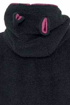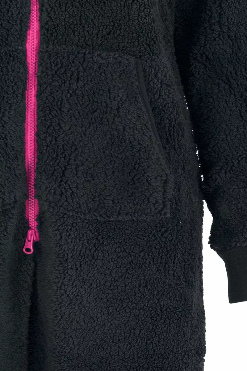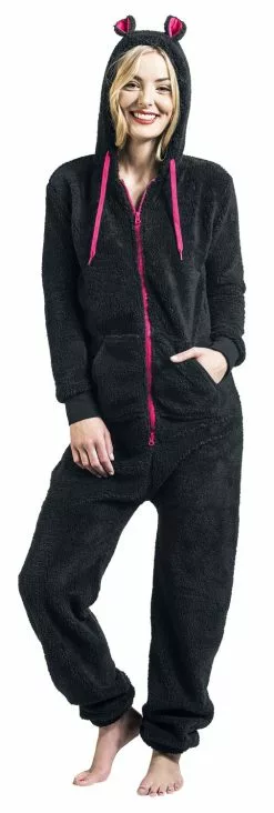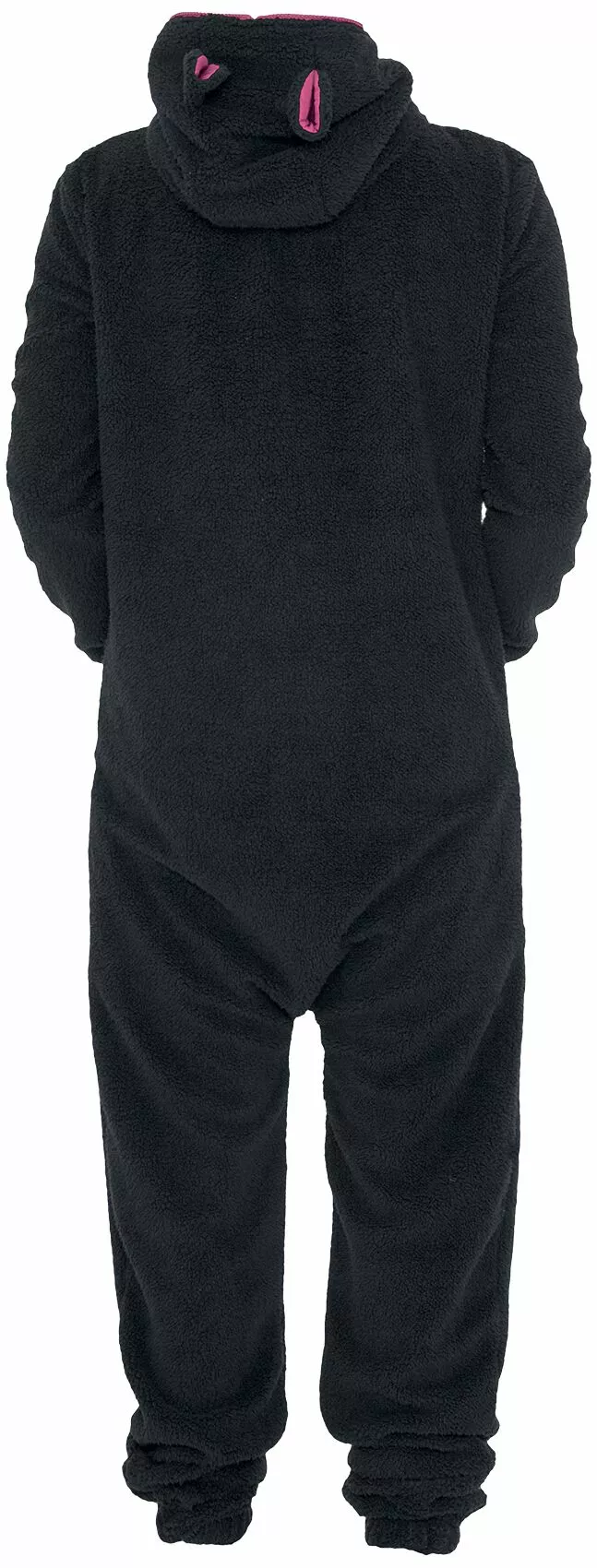 Extra comfortabele overall van teddystof met kleine oren op de capuchon, twee steekzakken en een lange rits. Gewoon aantrekken en je comfortabel voelen.