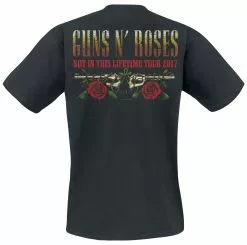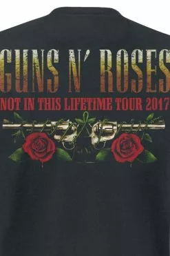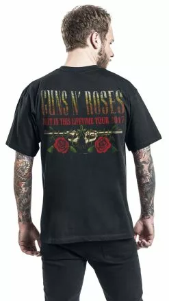 De legendarische Amerikaanse rockband Guns N’ Roses, met Axl Rose aan het roer, voorziet de wereld al langer dan 30 jaar van geweldige muziek en is niet meer weg te denken uit de muziekgeschiedenis. Op de voorkant van het zwarte T-shirt “Logo and Bullet Europe Tour 2017”, welke exclusief verkrijgbaar is bij Large, staat een print van twee revolvers, twee rozen, de bandletters van Guns N’ Roses en de woorden “EST. 1985 – Los Angeles”, die natuurlijk refereren aan het jaar en de plaats waarin de band werd opgericht. Ook op de achterkant staat een print, welke wederom de twee revolvers, de twee rozen en de bandletters van Guns N’ Roses toont, met daarbij de naam van de “Not In This Lifetime Tour 2017”.