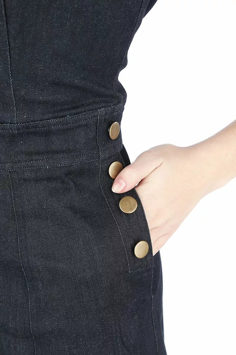 Deze coole “Jeans Jumpsuit” van Voodoo Vixen heeft een bijzonder ontwerp en geeft jou de perfecte look, waardoor je er zeker van kunt zijn dat alle ogen op jou zijn gericht. De jumpsuit heeft verstelbare banden en decoratieve knopen op de zijkanten. Het rekbare materiaal zorgt ervoor dat het kledingstuk heel comfortabel zit.