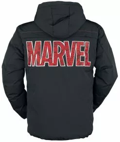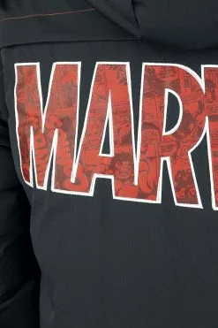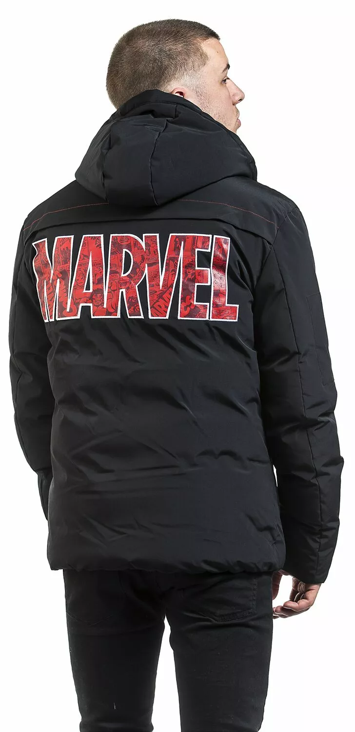 De winterjas “Marvel Logo” is bedoeld voor alle Marvel-fans die ook wanneer het buiten koud is willen laten zien dat ze een fan zijn. Deze comfortabele jas is exclusief verkrijgbaar bij Large en heeft een capuchon met een trekkoord, een patch van het logo van Marvel op de borst, een grote print van het logo van Marvel op de achterkant en een all-over-print van Marvel op de binnenkant. Daarbij heeft de jas een zak met een contrasterende ritssluiting in de rechtermouw, twee opgenaaide klepzakken op de borst en een steekzak in beide zijkanten, die samen meer dan genoeg ruimte bieden voor het meenemen van je belangrijke spullen en voor het warm houden van je handen.