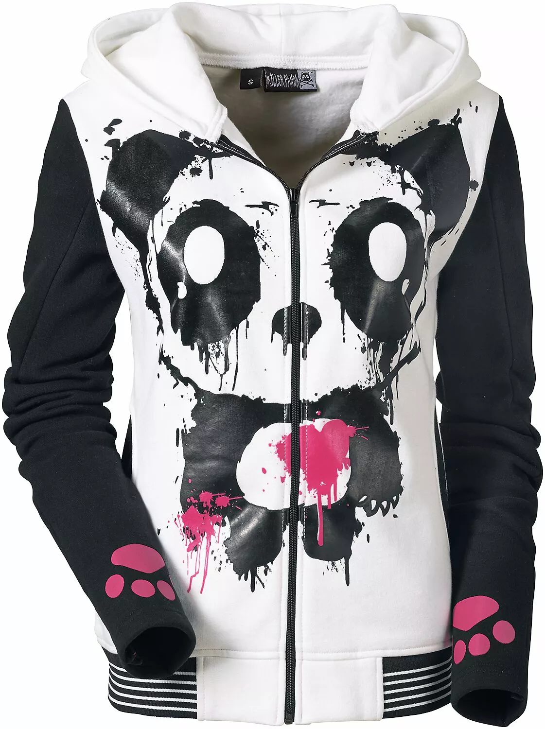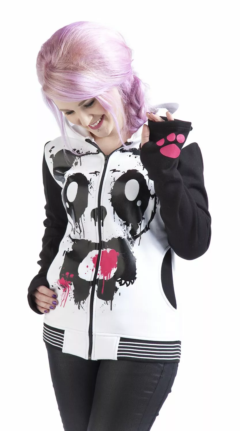 Waarschuwing: Killer Panda! Het zwart-wit-roze Mase Hood girls vest met capuchon laat je er echt cool uitzien. Aan de voorkant een print van een Killer Panda met een groot roze hart. De twee pandaoren op de capuchon geven het vest een perfecte panda-look. Het lang gesneden vest heeft duimgaten in de mouwen en twee grote steekzakken met genoeg ruimte voor bamboe, bijvoorbeeld.