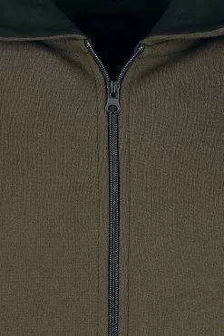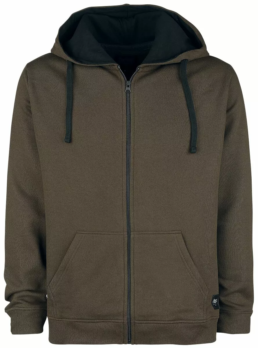 Het bruine vest “Drawn to the Flame” van Black Premium by EMP zit lekker comfortabel en heeft geen overbodige fratsen. Wat het vest wel heeft zijn praktische eigenschappen, zoals de capuchon met trekkoord, de verdeelde kangoeroezak en de geribde zomen. De capuchonvoering en het trekkoord hebben een contrasterende kleur. Exclusief verkrijgbaar bij Large!