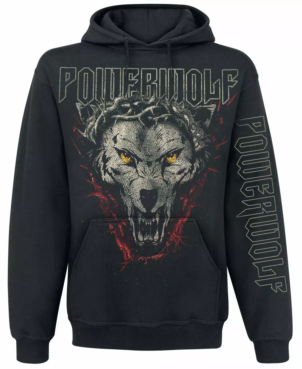 De wolven van Powerwolf staan sinds 2003 op het podium en brengen het ene indrukwekkende album na het andere uit. Het debuutalbum “Return In Bloodred” bewees al hoe goed Duitse powermetal kan zijn, maar daar lieten de muzikanten van Powerwolf het niet bij zitten. Ze brachten daarna albums uit zoals “Lupus Dei”, “Blood of the Saints” en “Blessed & Possessed”. De trui met capuchon “Metal Is Religion” van Powerwolf heeft een coole print van een wolvenkop en de bandnaam op de voorkant, een print van de tekst “Metal Is Religion” op de achterkant en een print van de bandletters op de linkermouw.
