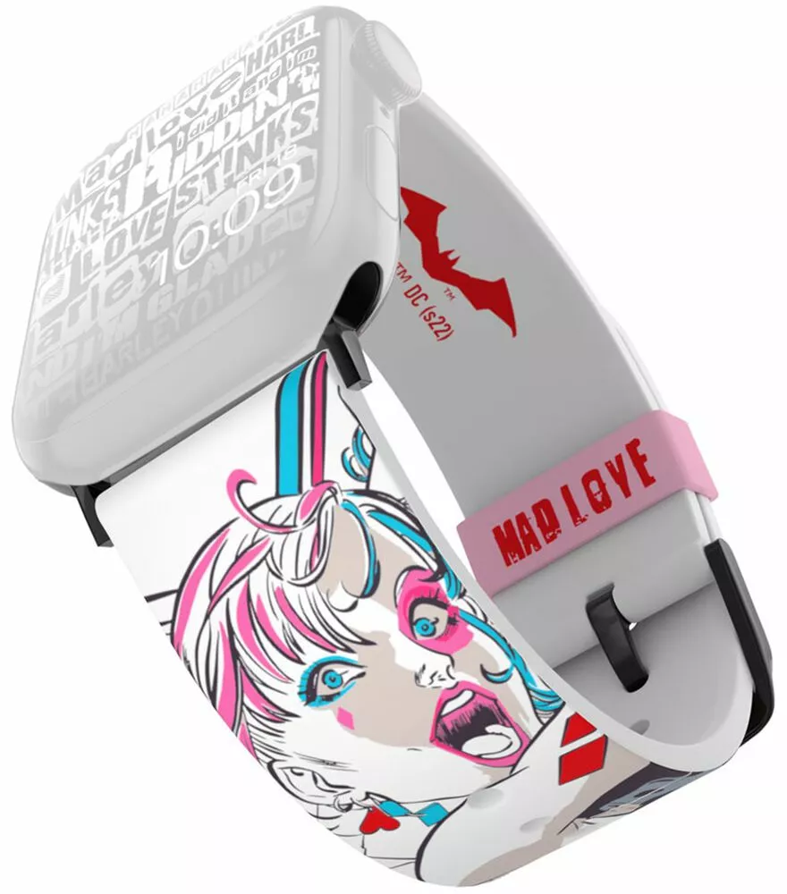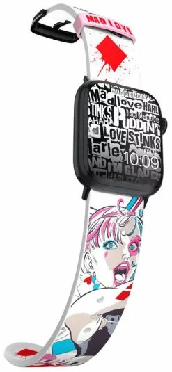 – Fall madly in love with this smartwatch band that stars the Clown Princess of Crime manga-style. This white watch band reflects the anti-heroine’s eccentric, energetic personality and colorfully captures her delight in causing mayhem