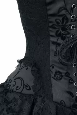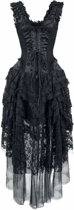 Zeg maar vaarwel tegen al die saaie jurkjes en maak je klaar voor deze van Burleska! Het extravagante kledingstuk combineert een sexy korset met een rok die langer is aan de achterkant dan aan de voorkant. Met veters en vele details.