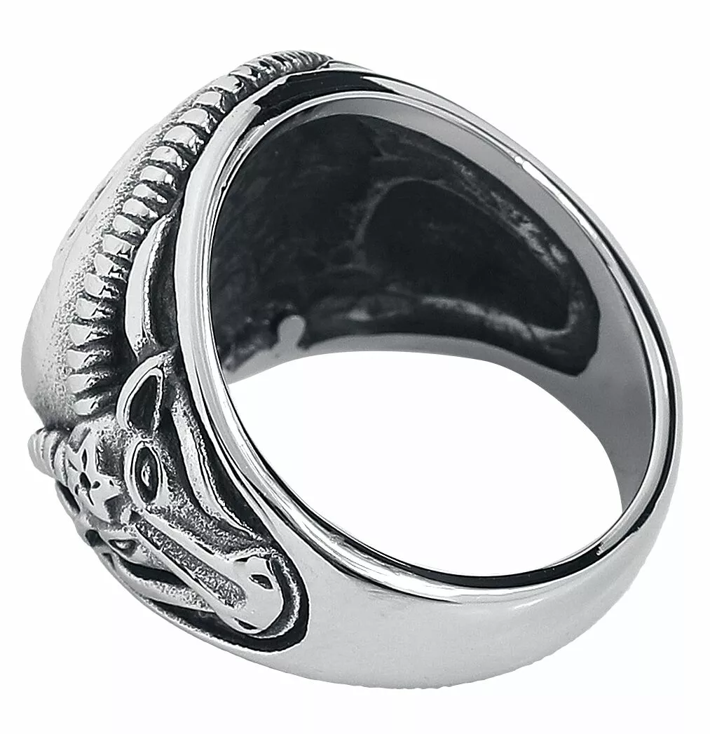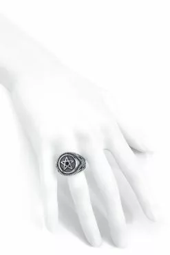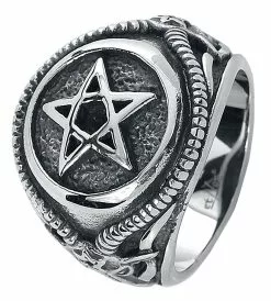 – Ring met pentagram en geitenkoppen aan de zijkanten