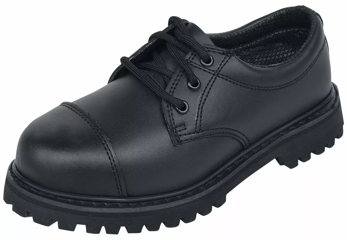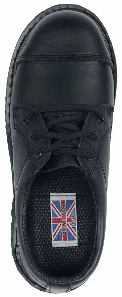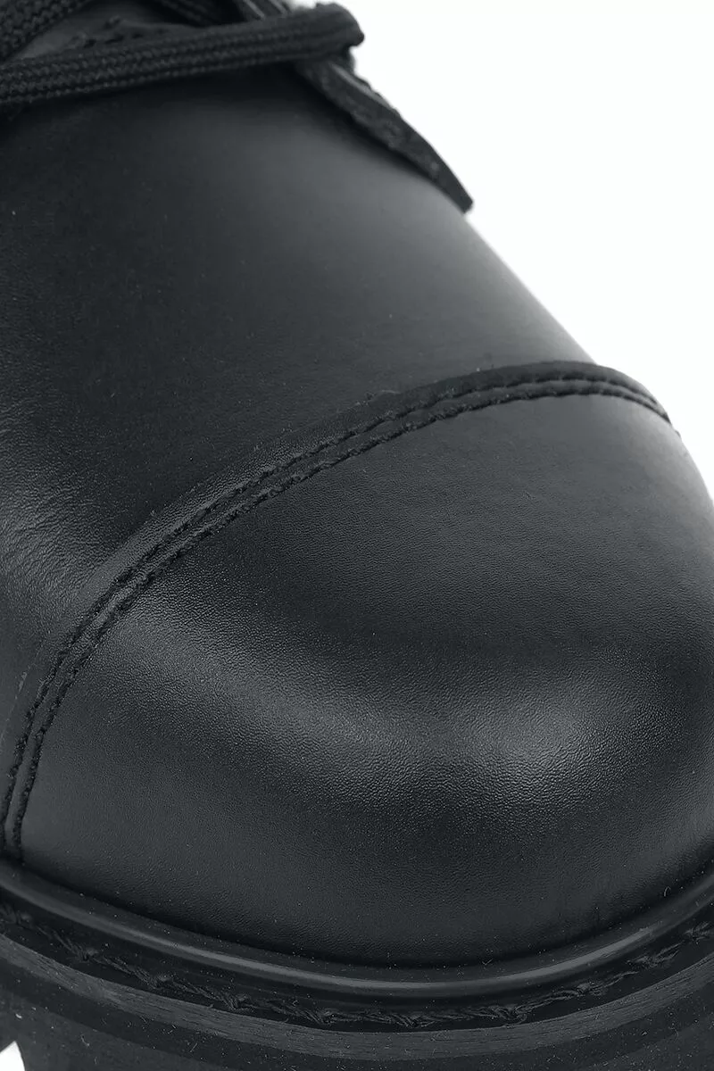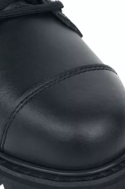 De Brandit “Phantom 3 Hole” schoenen zijn waterafstotend en gemaakt van echt leder. Ze zitten comfortabel en houden je voeten warm. De schachthoogte is 7 cm en de stalen neus garandeert veiligheid.
