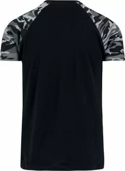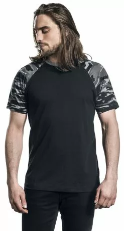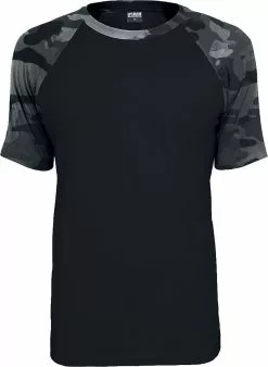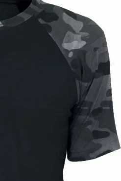 De “Raglan Contrast Tee” van Urban Classics heeft een fraai en contrasterend ontwerp. De torso is volledig zwart, terwijl de mouwen en de schouders voorzien zijn van een donker camouflagepatroon. De klassieke, ronde halslijn maakt het stijlvolle kledingstuk helemaal compleet.